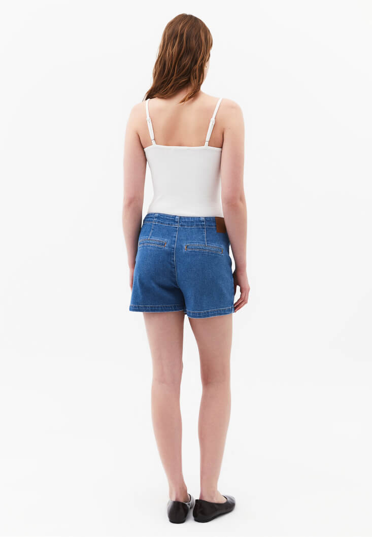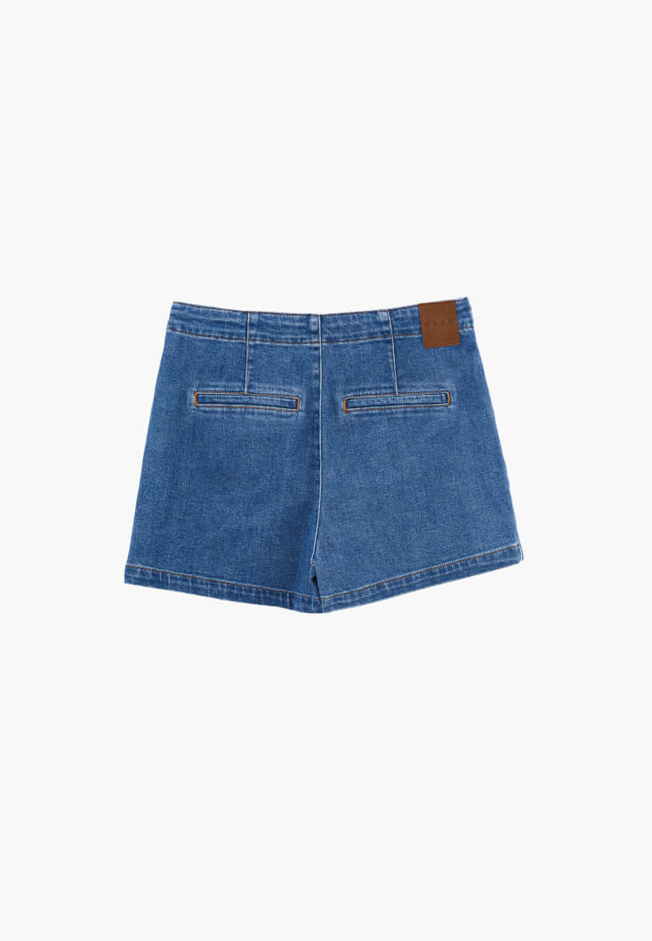 • Bayan Mavi Bağlama Detaylı Denim Şort Etek