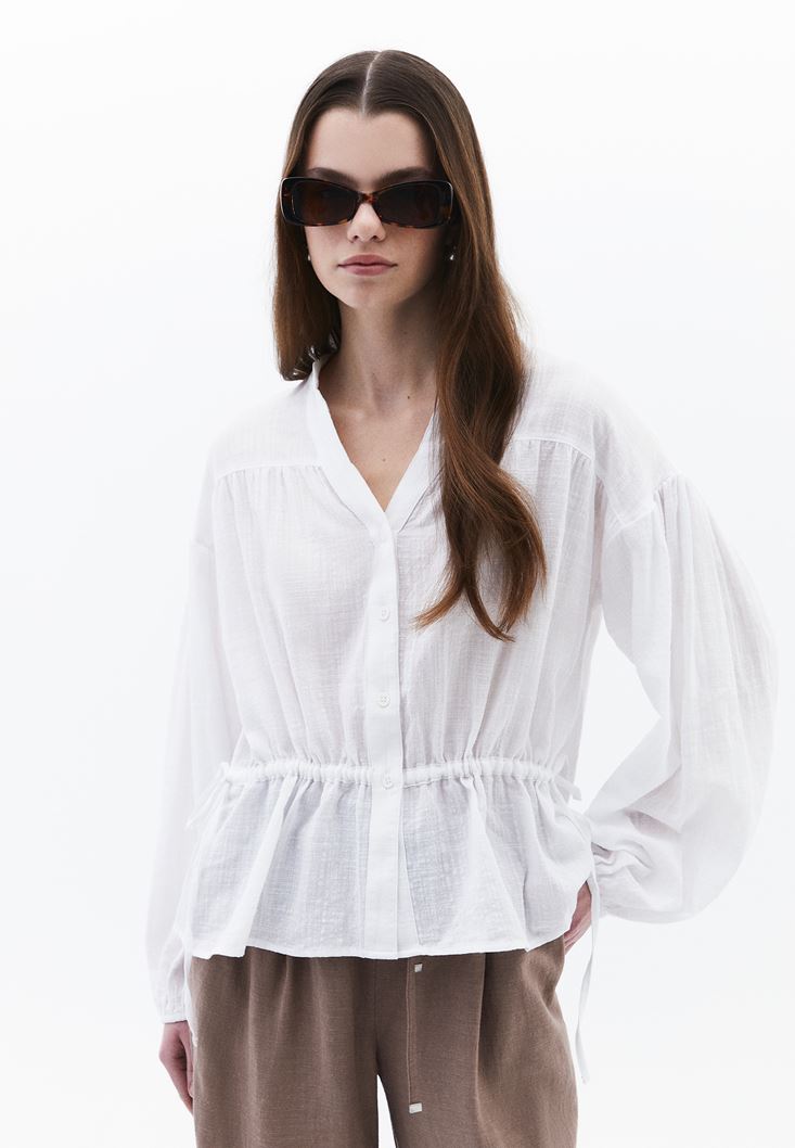 • Bayan Beyaz Bağlama Detaylı Gömlek