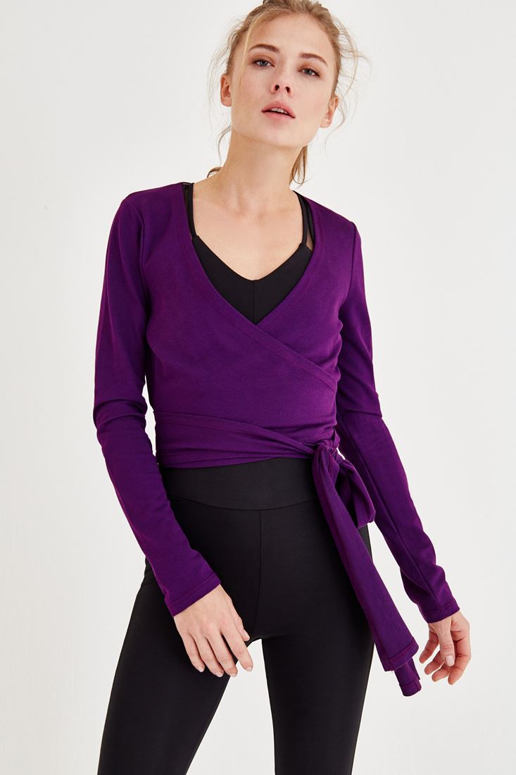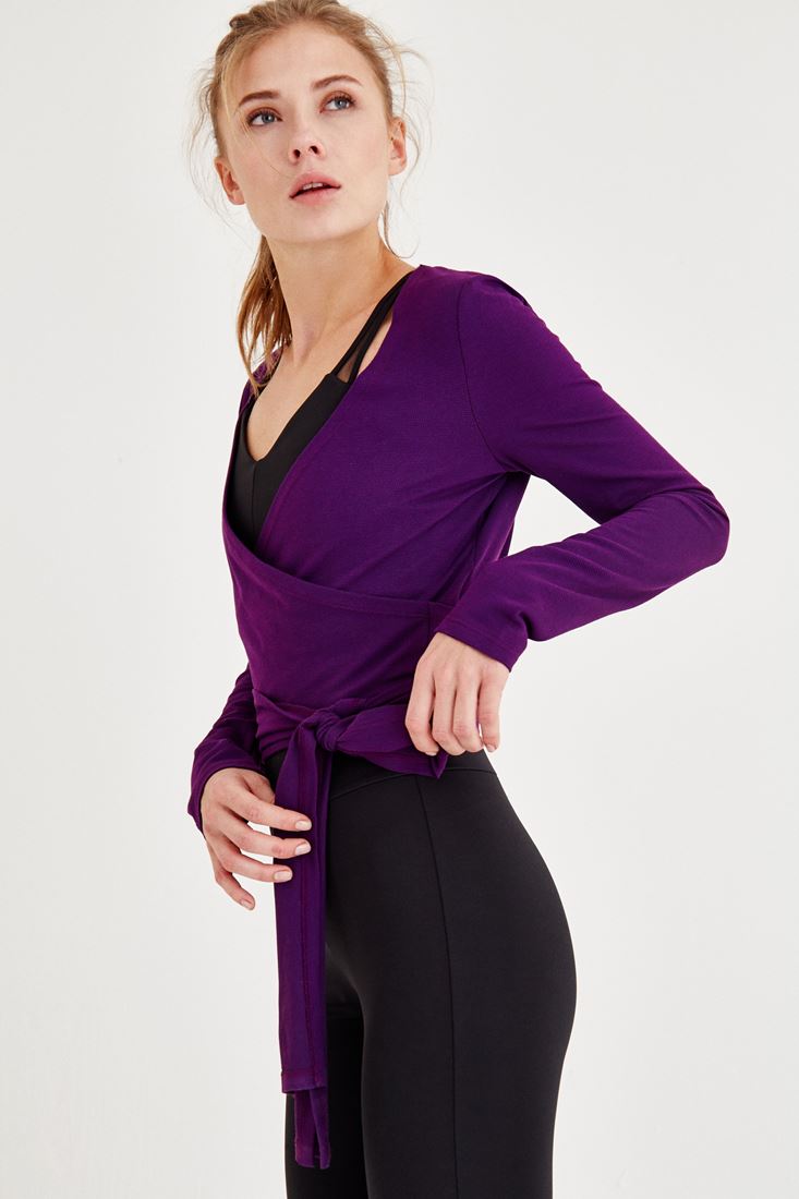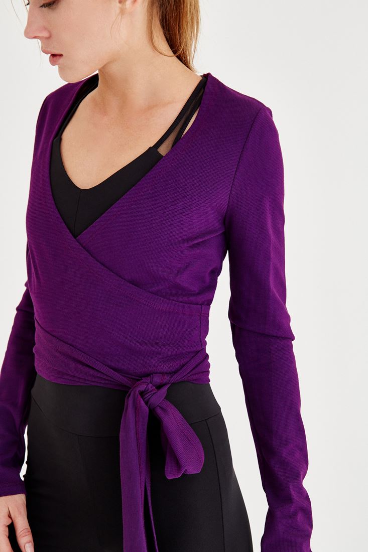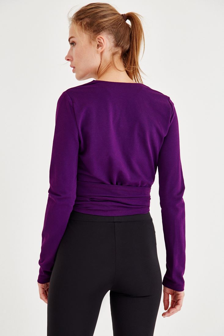 • Bayan Mor Bağlama Detaylı Kruvaze Bluz