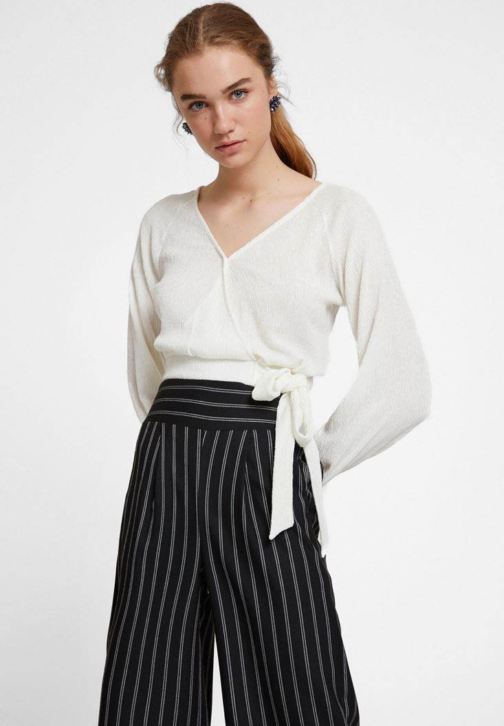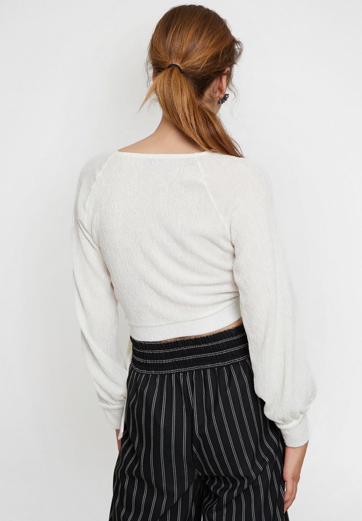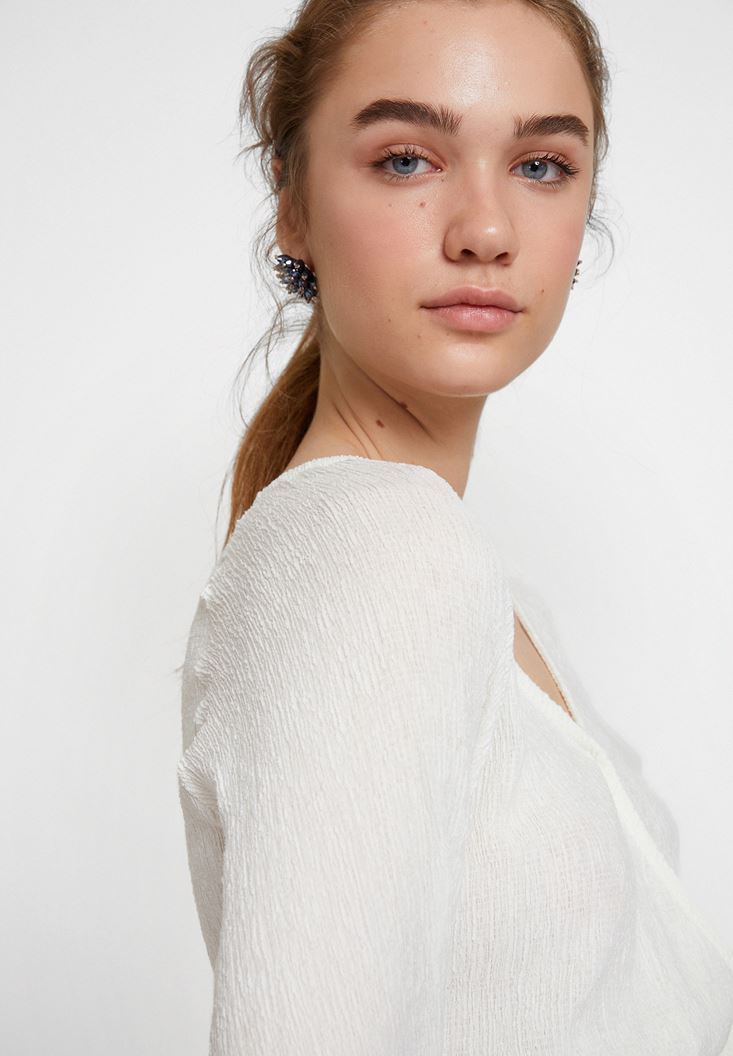 Krem Bağlama Detaylı Kruvaze Kesim Bluz