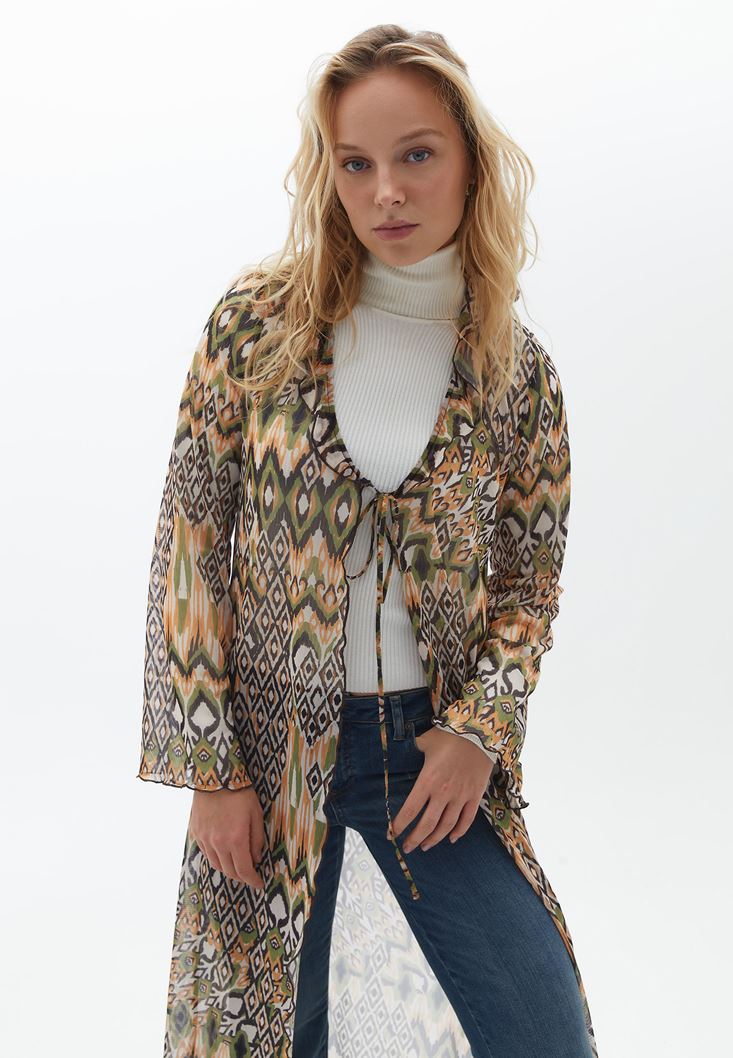 • Bayan Çok Renkli Bağlama Detaylı Loose-Fit Kimono