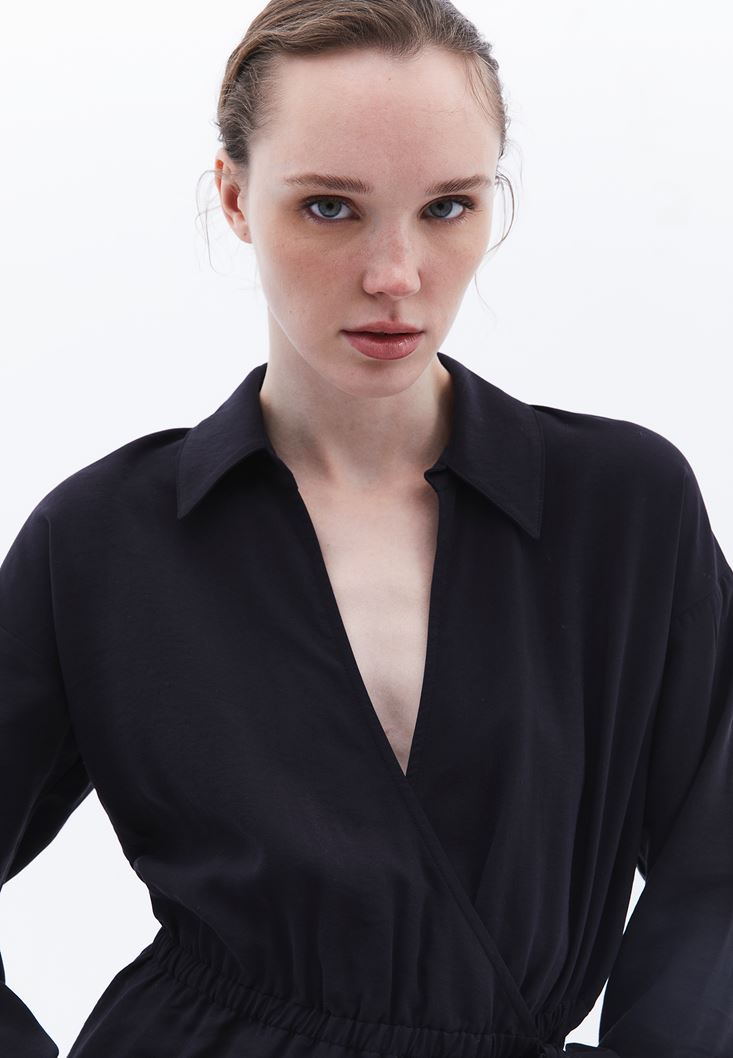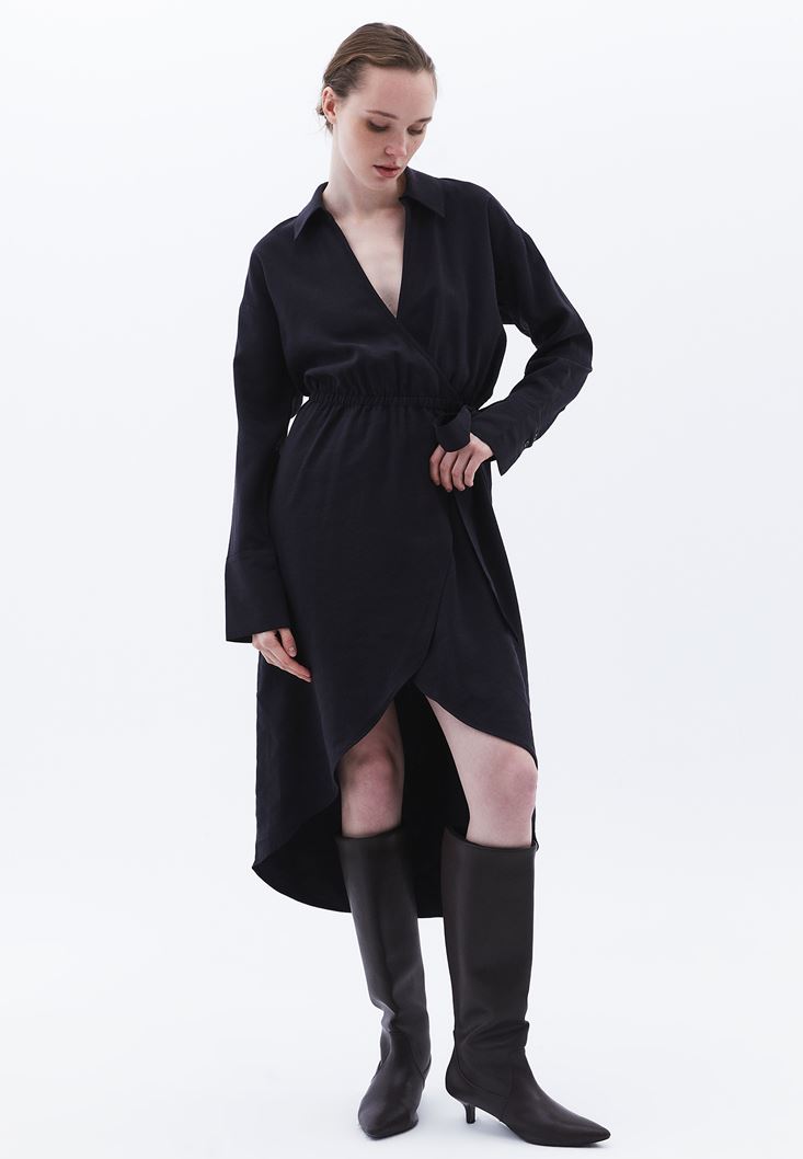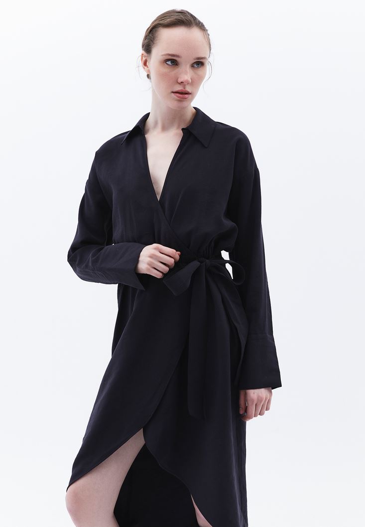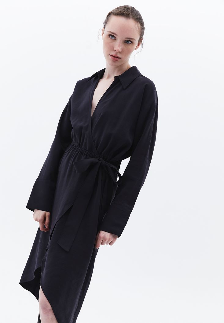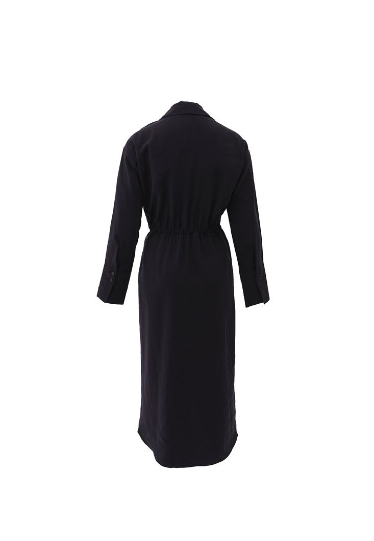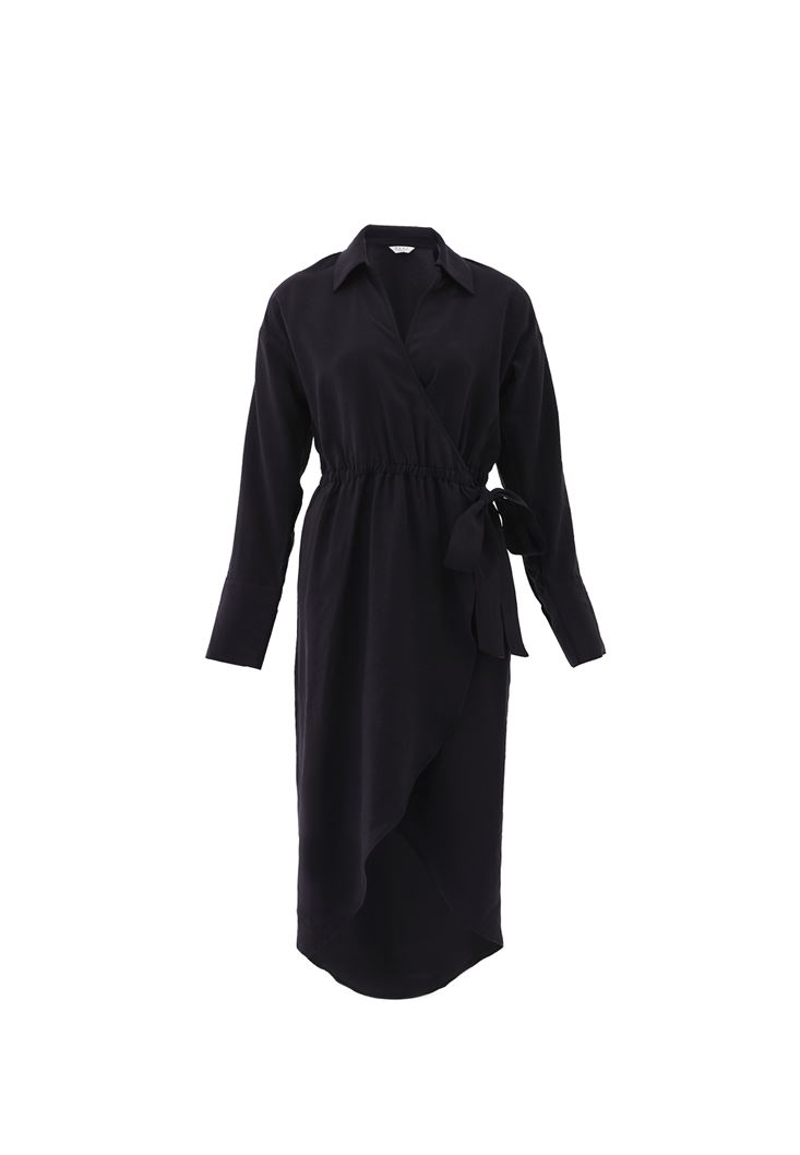 • Bayan Siyah Bağlama Detaylı Midi Elbise ( MODAL )