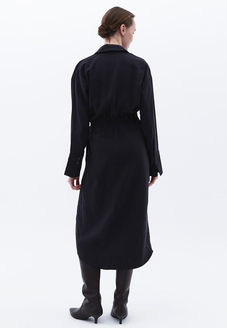 Siyah Bağlama Detaylı Midi Elbise ( MODAL )
