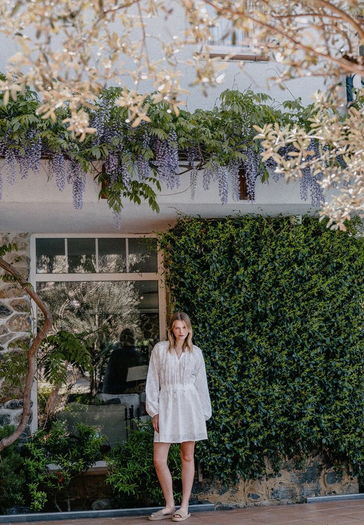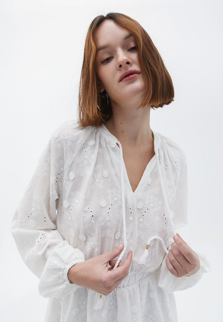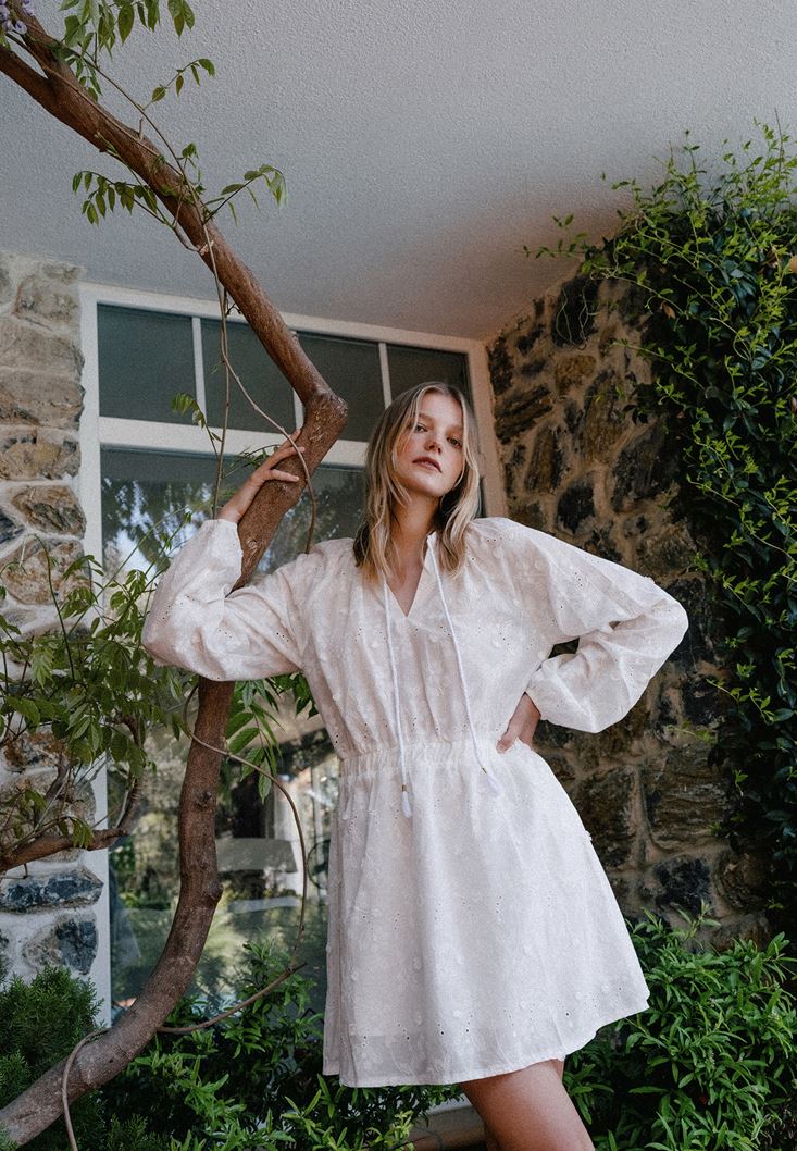 • Bayan Krem Bağlama Detaylı Mini Elbise
