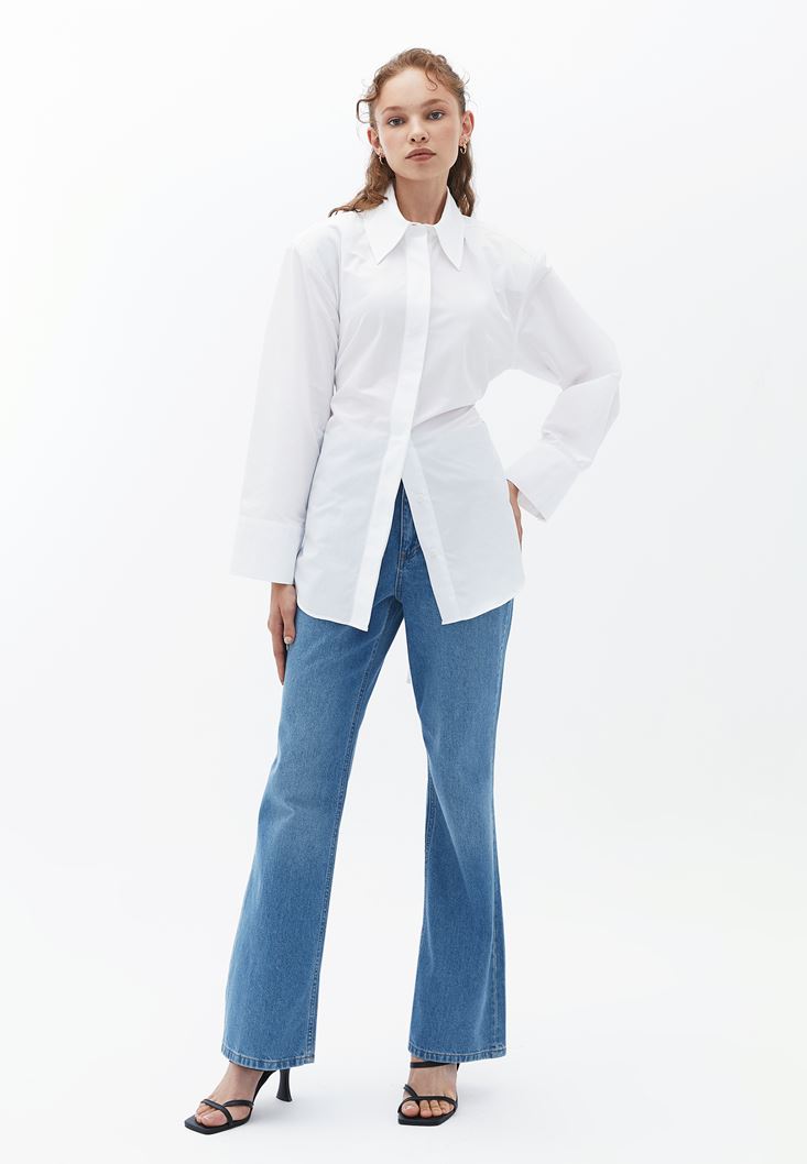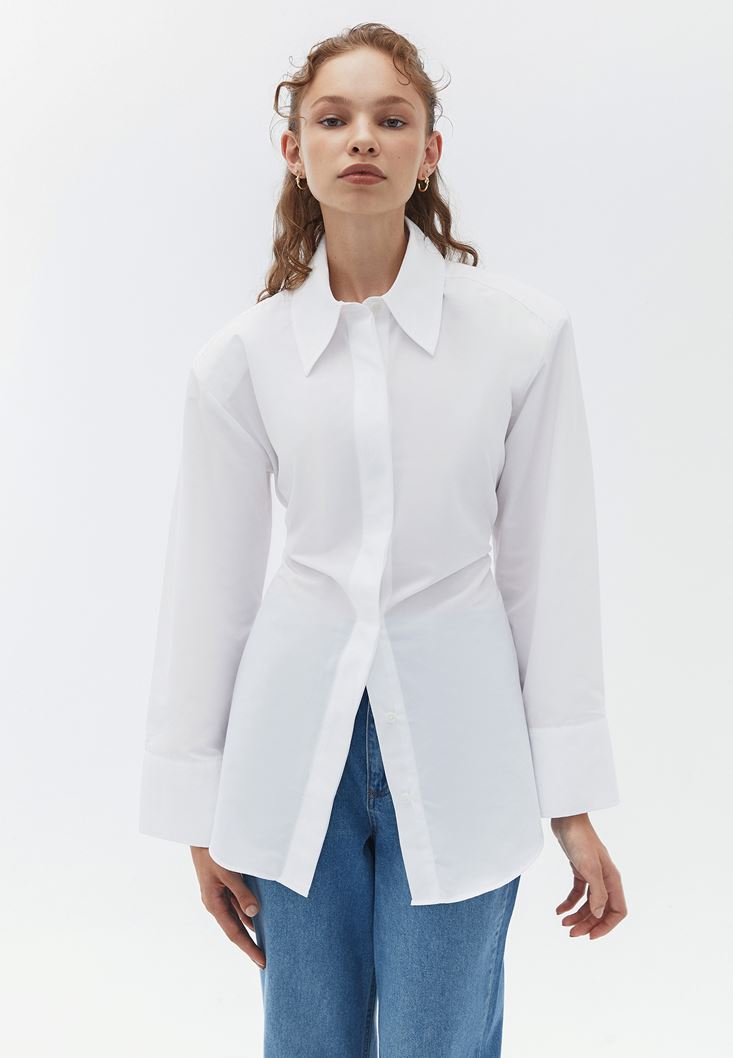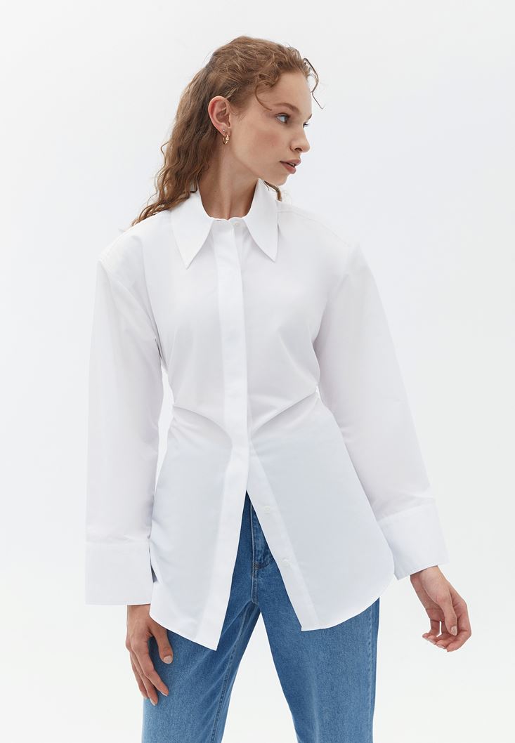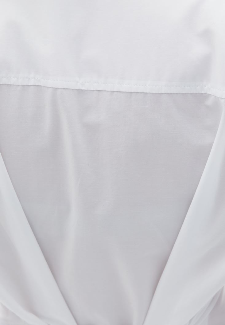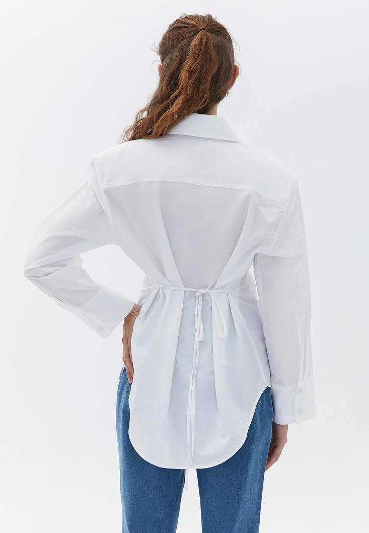 Beyaz Bağlama Detaylı Oversize Gömlek