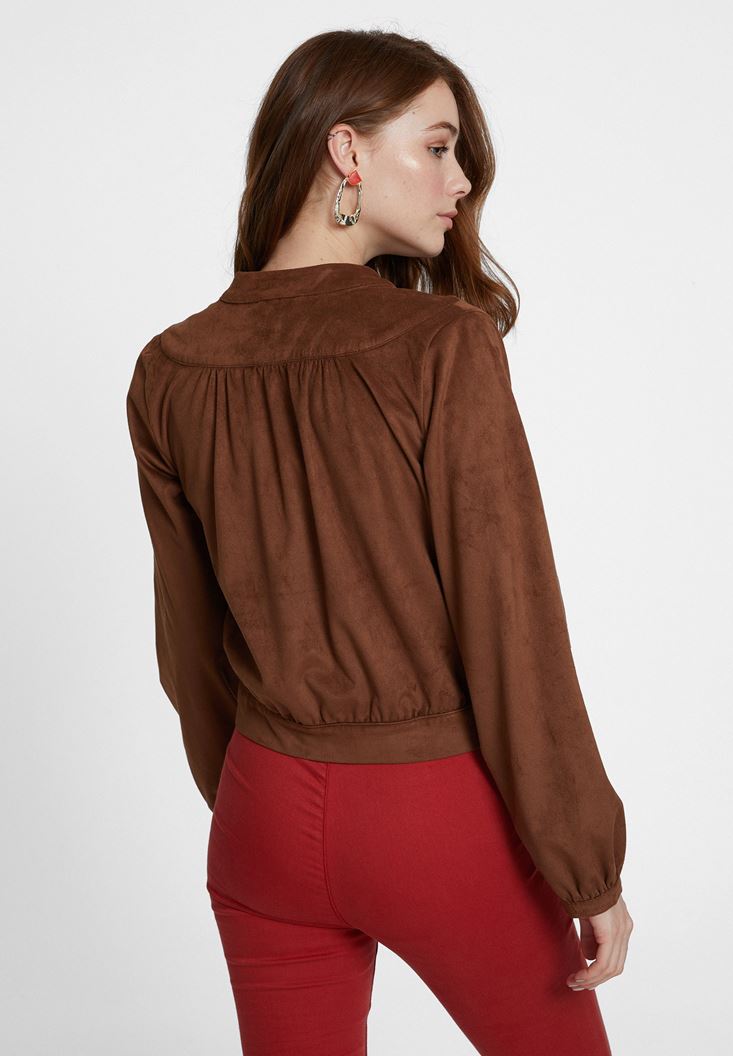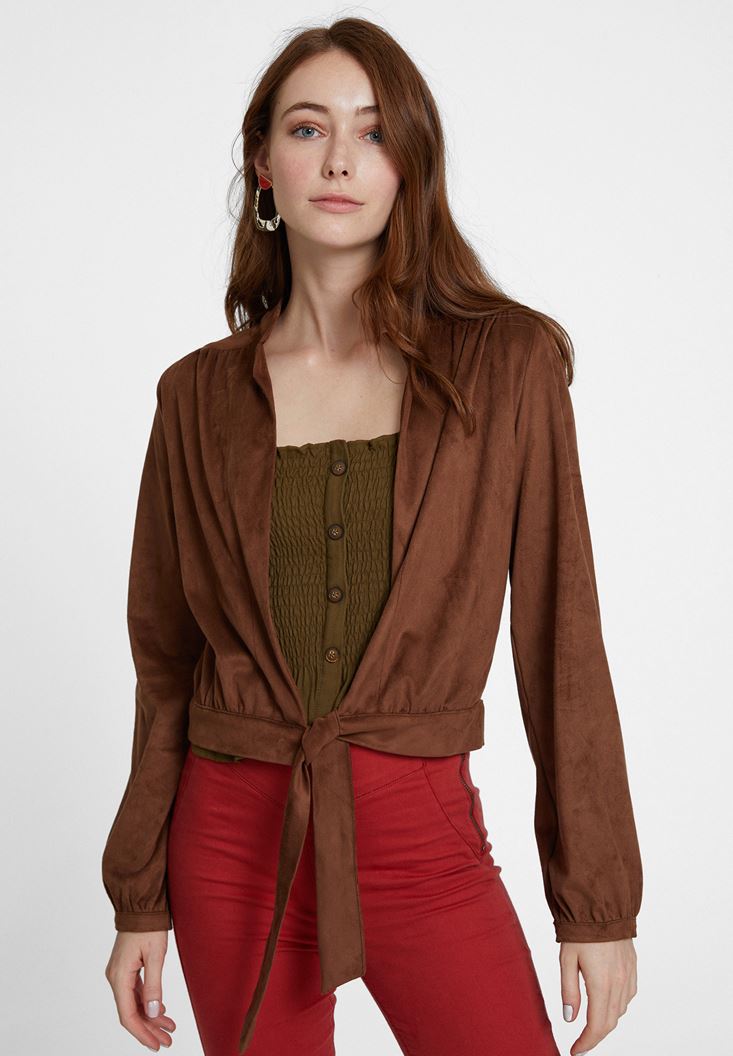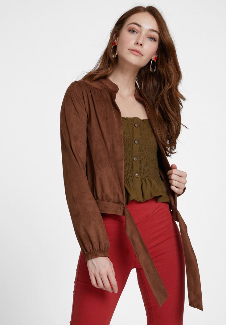 • Bayan Kahverengi Bağlama Detaylı Süet Ceket