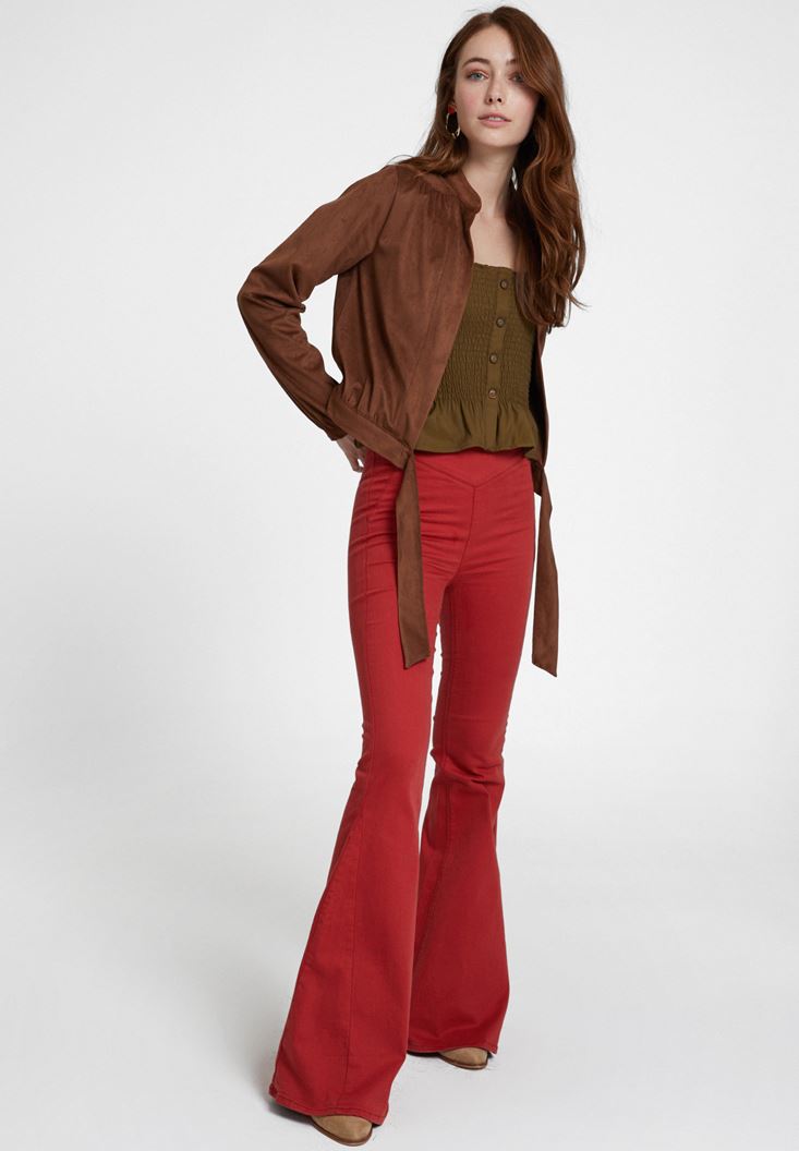 Baglama Detayli Süet Ceket modeli yumusak dokusu, zarif detaylari ve özgün tasarimi ile kombinlerinizde yer vermekten keyif alacaginiz parçalardan birisi olacak. Ceket modelinin hakim yaka kesimi ve bilezik kol tasarimi oldukça özgün bir görünüm sunuyor. Dügme ya da fermuar detayinin bulunmadigi ceket modelinde bel kesiminde kullanilan baglama detayi bu parçaya hareket kazandiriyor. Baglama detayini açik birakarak salas bir görünüm elde edebileceginiz tasarimi dilerseniz baglayarak kruvaze görünümünde kullanabilirsiniz. Günlük ve spor kombinlerin yani sira sokak modasi uygun kombinlerinizde rahatlikla tercih edebileceginiz ceket modeli ile tarzinizi en güzel sekilde ön plana çikarabilirsiniz. OXXO’nun özgür ruhlu kadinlardan aldigi ilhami yansitan tasarimlarindan birisi olan Baglama Detayli Süet Ceket modeli ile dikkat çekici bir siklik elde edeceksiniz.