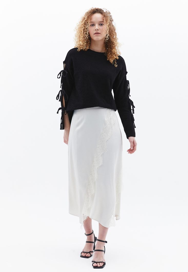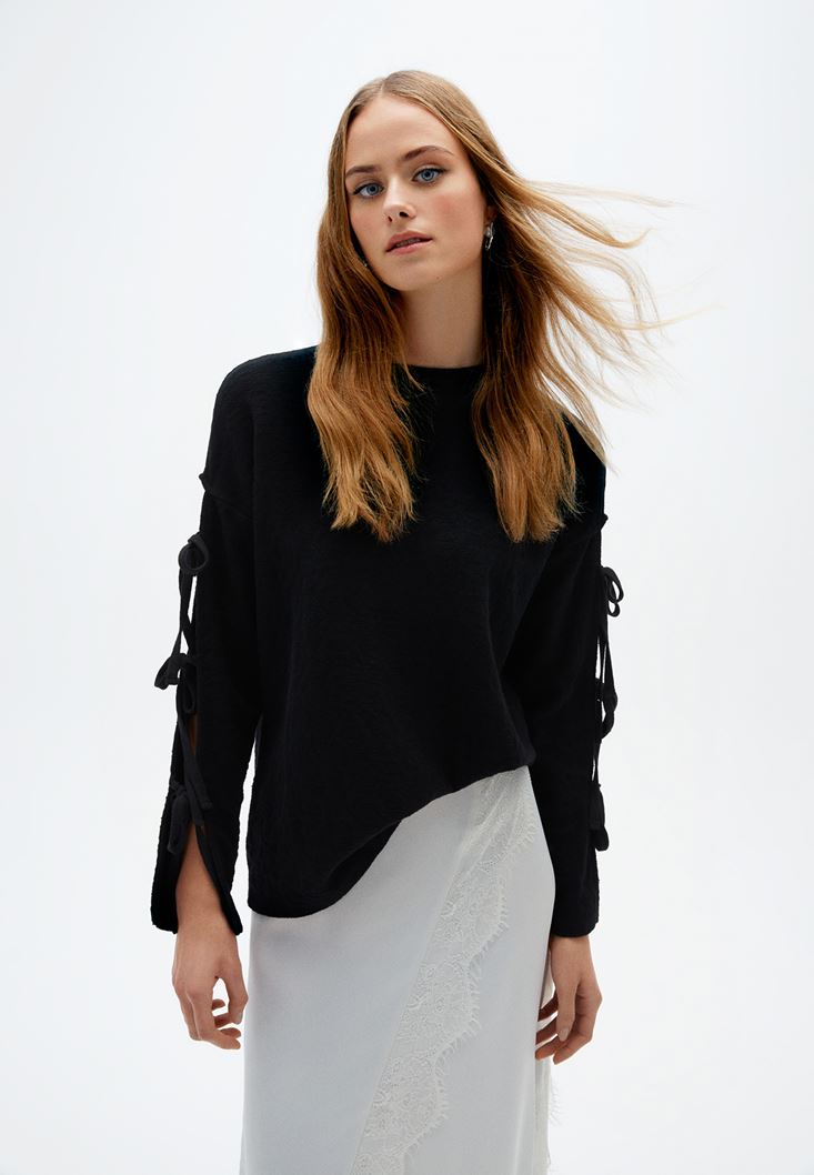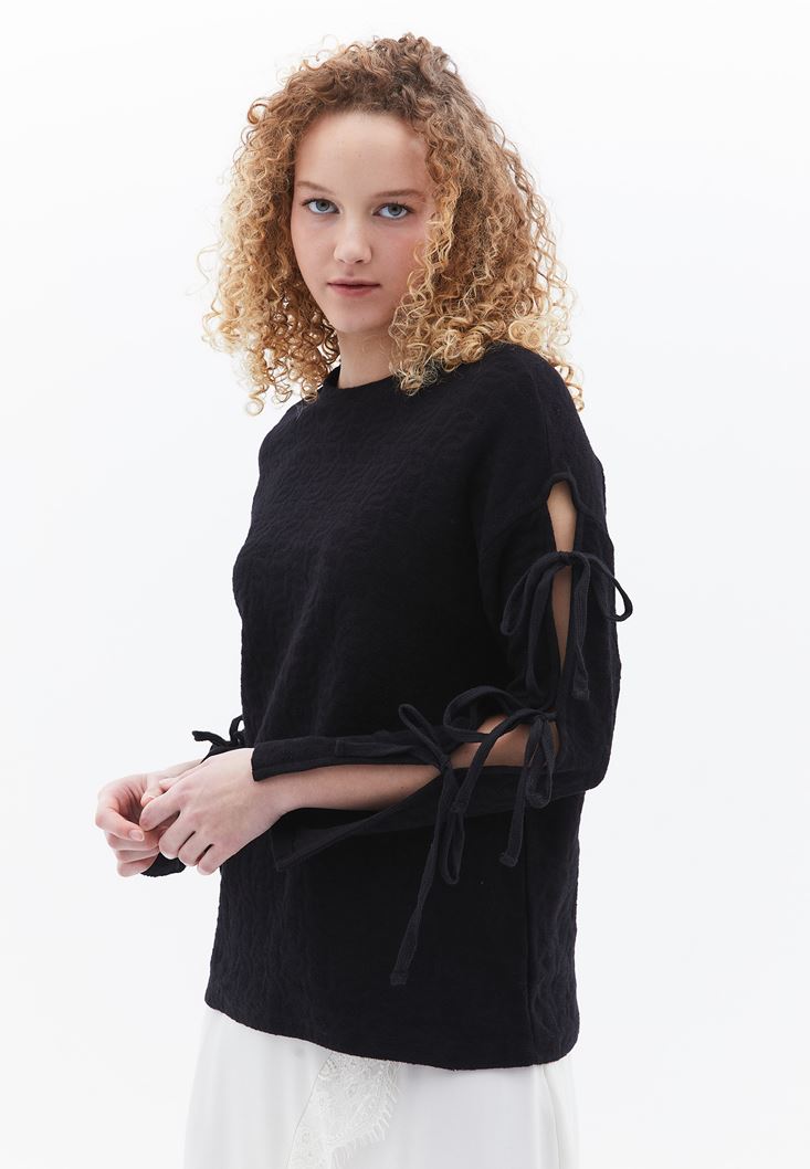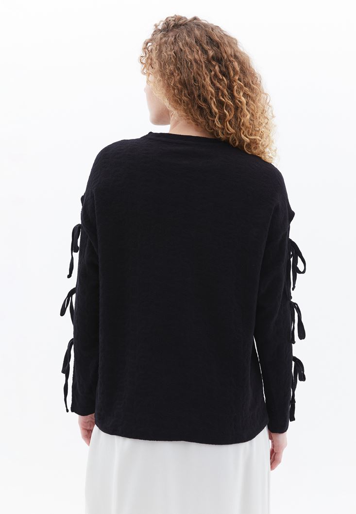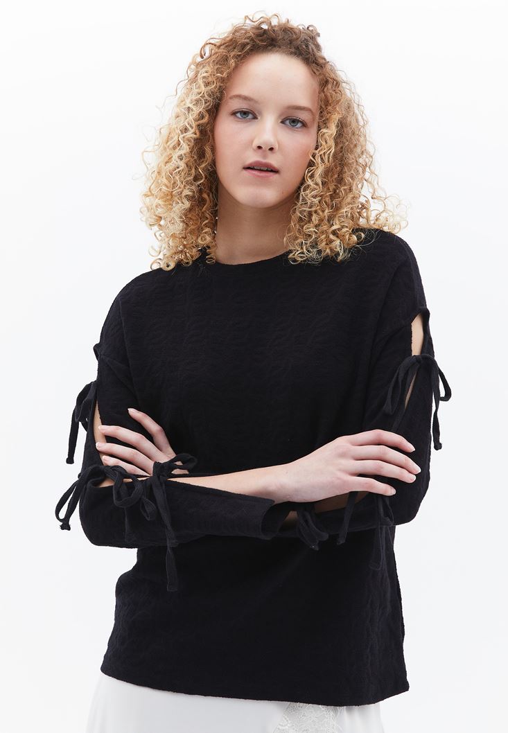 • Bayan Siyah Bağlama Detaylı Sweatshirt