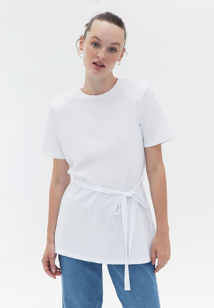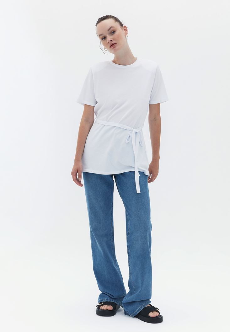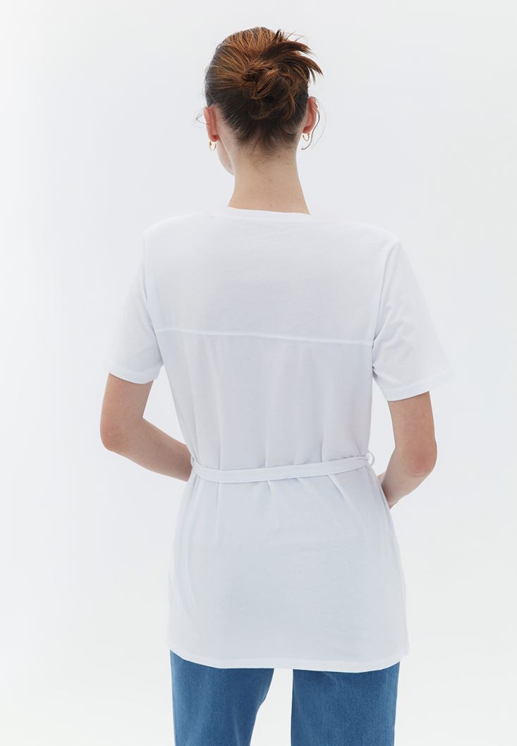 Pamuklu Bağlama Detaylı Tişört