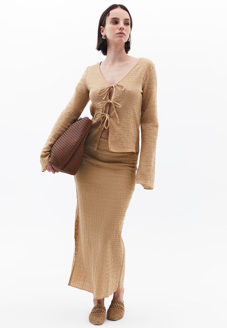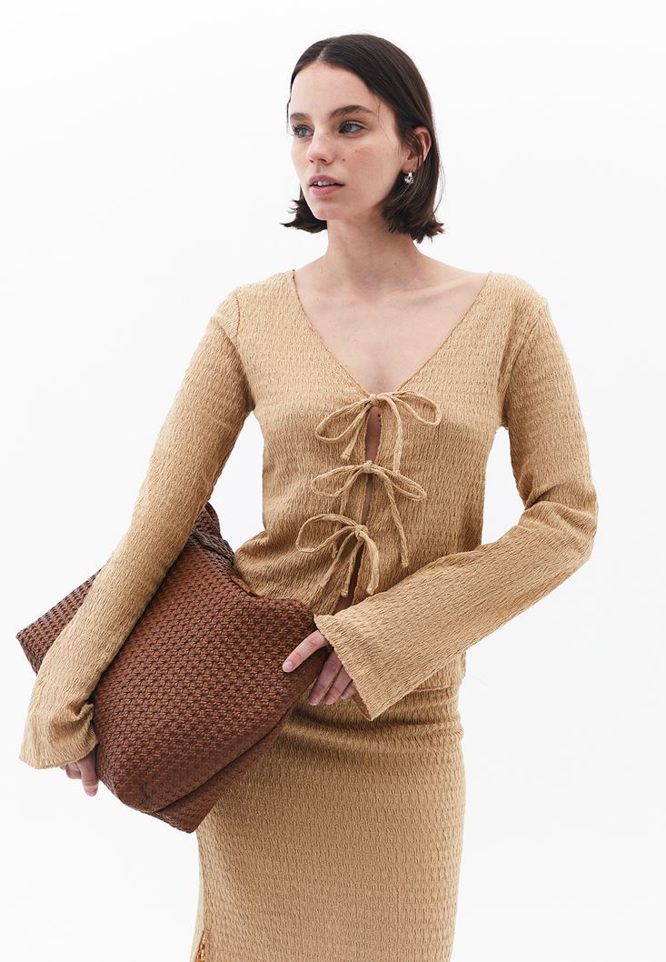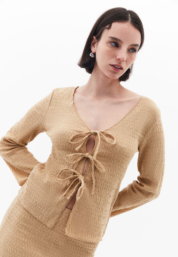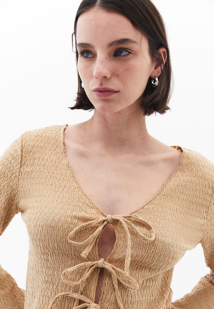 Bej Bağlama Detaylı Top