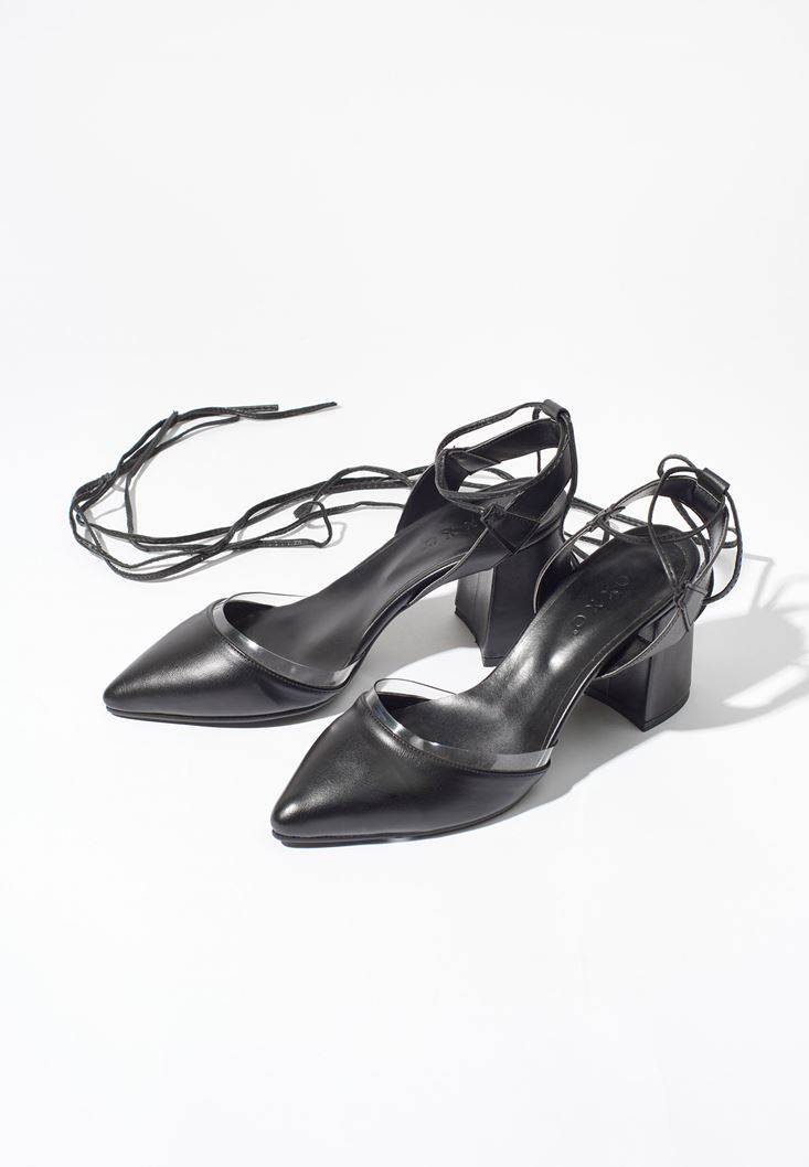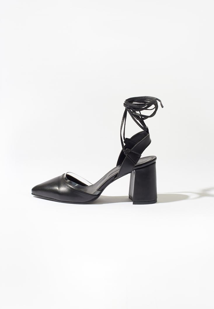 Siyah Bağlama Detaylı Topuklu Ayakkabı