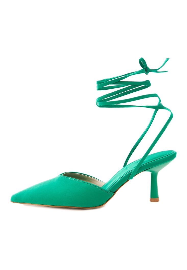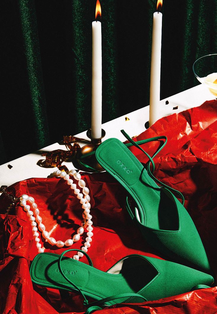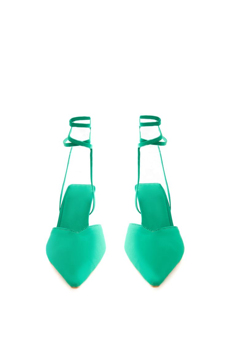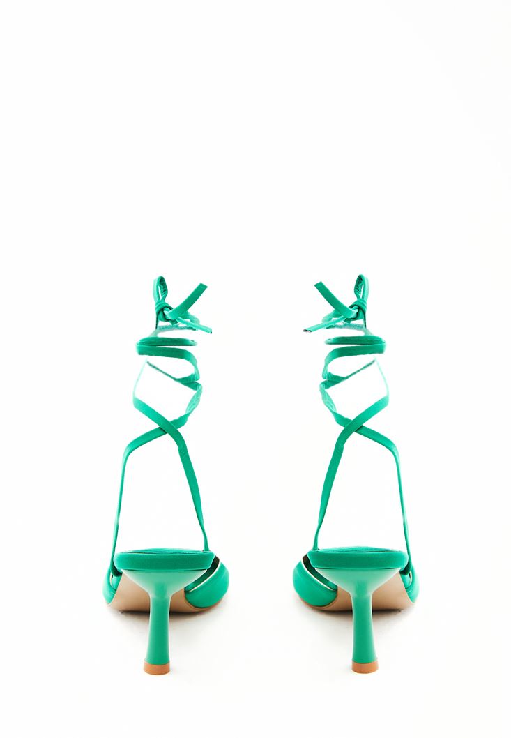 Yeşil Bağlama Detaylı Topuklu Ayakkabı
