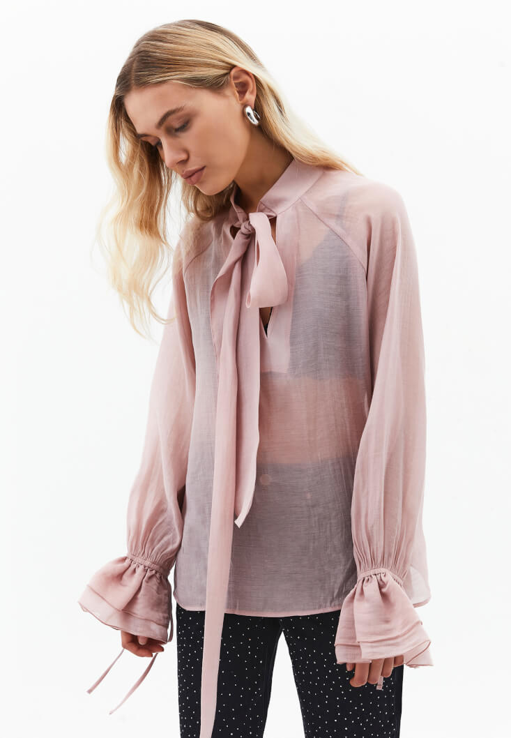 Pembe Bağlama Detaylı Tül Bluz ( TENCEL™ )