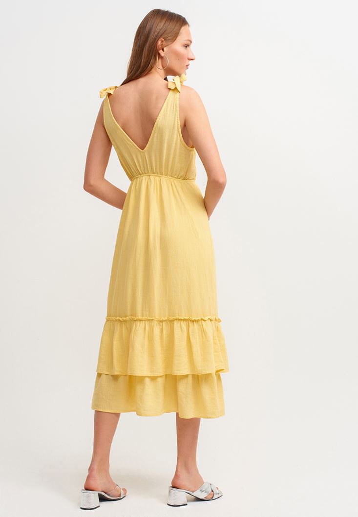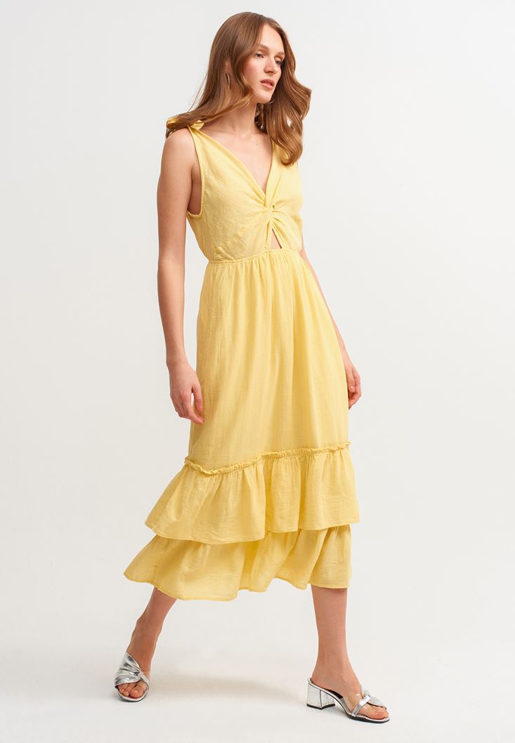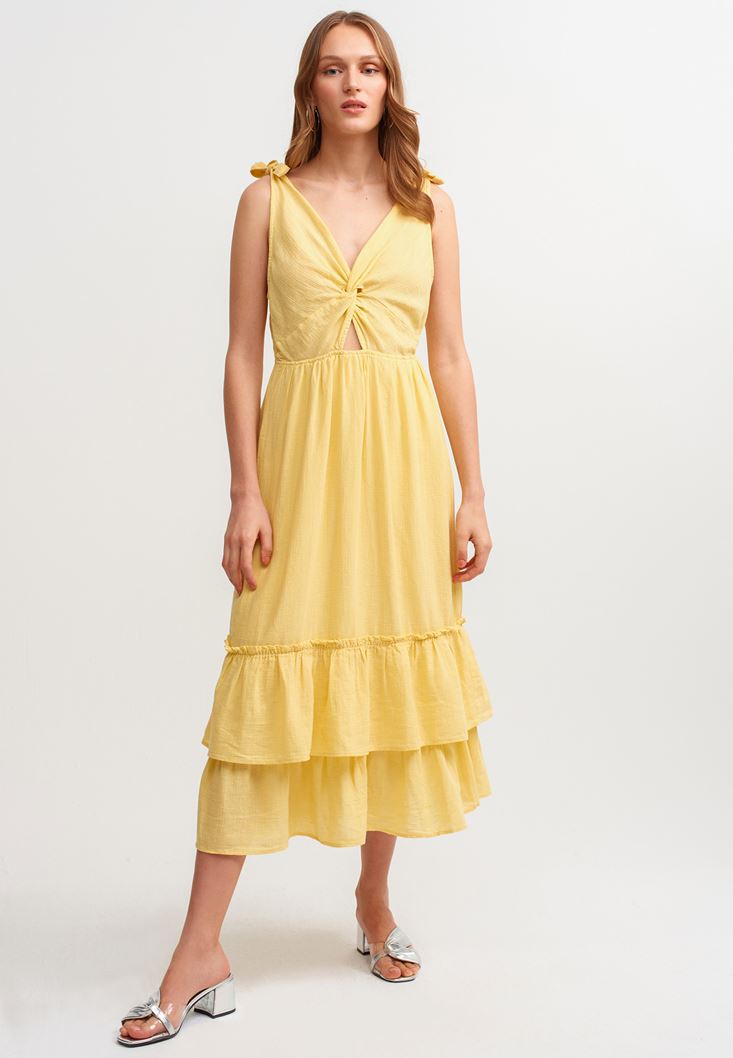 • Bayan Sarı Bağlama Detaylı Uzun Elbise ( TENCEL™ )