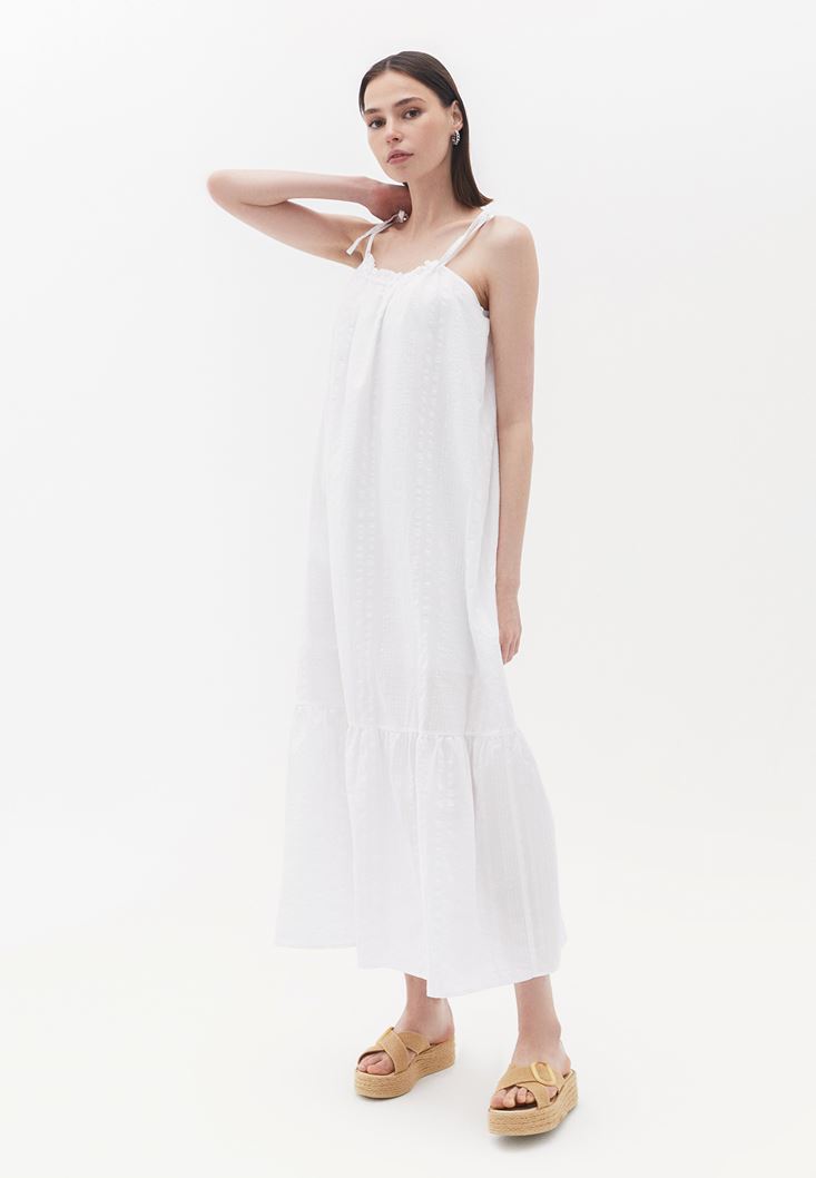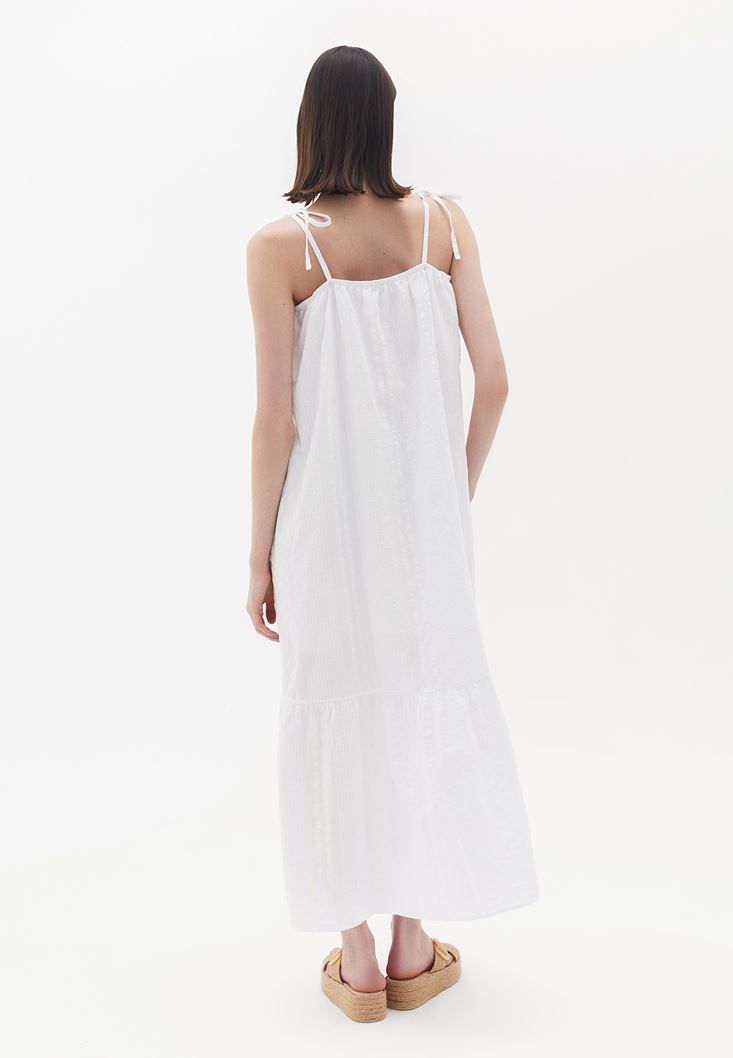 • Bayan Beyaz Bağlama Detaylı Uzun Elbise