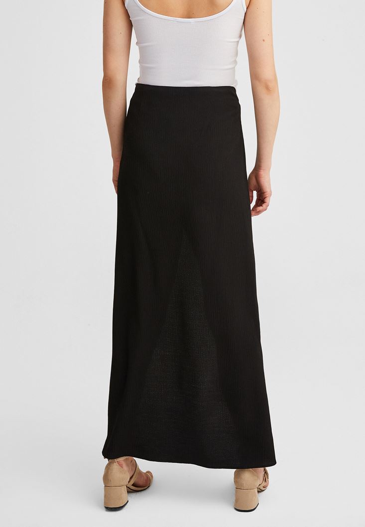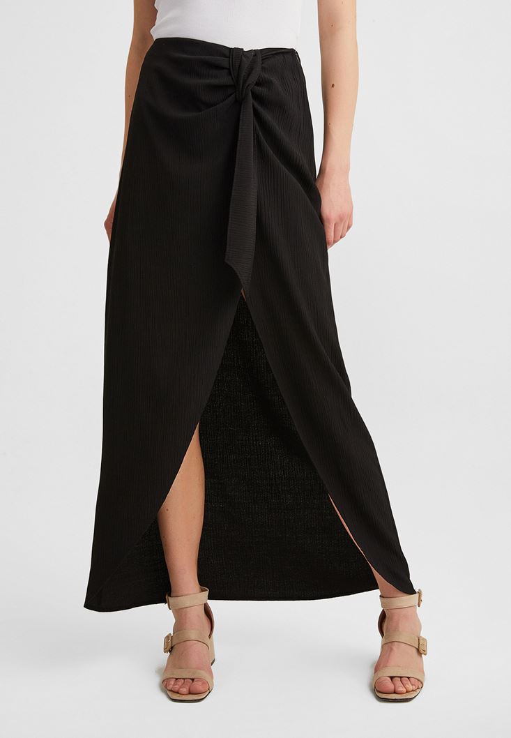 • Bayan Siyah Bağlama Detaylı Uzun Etek