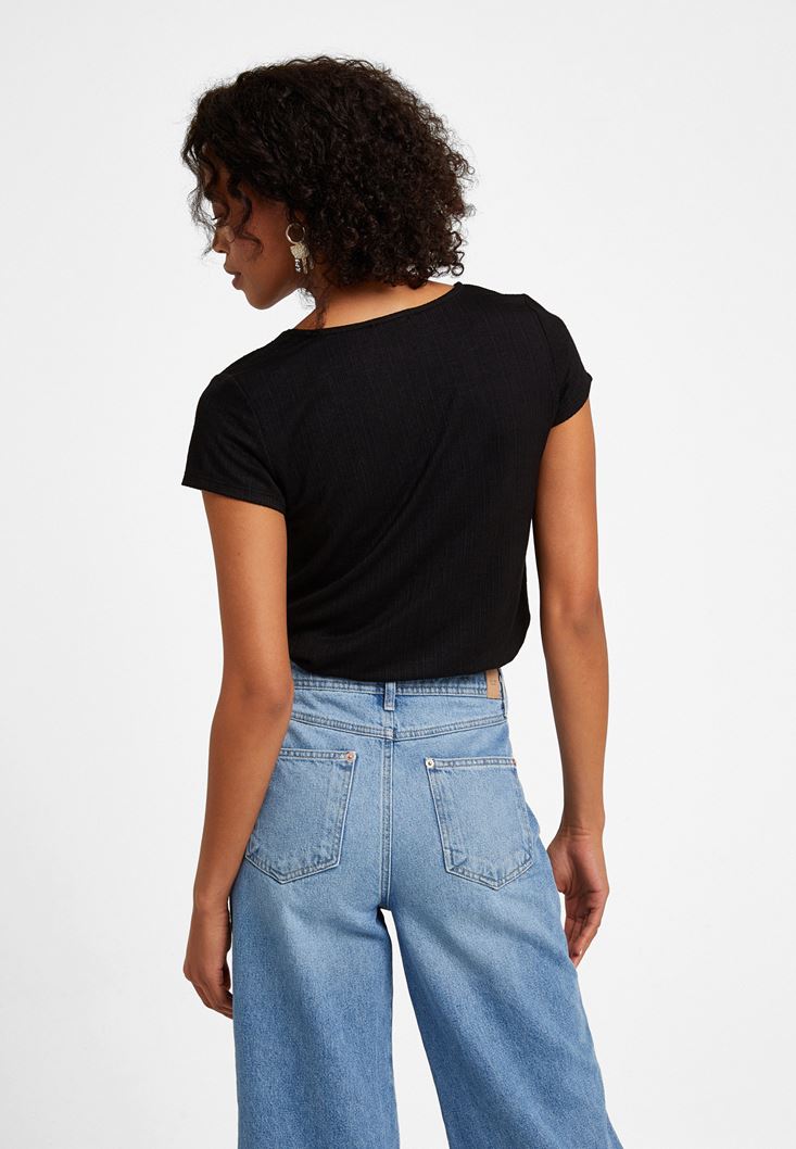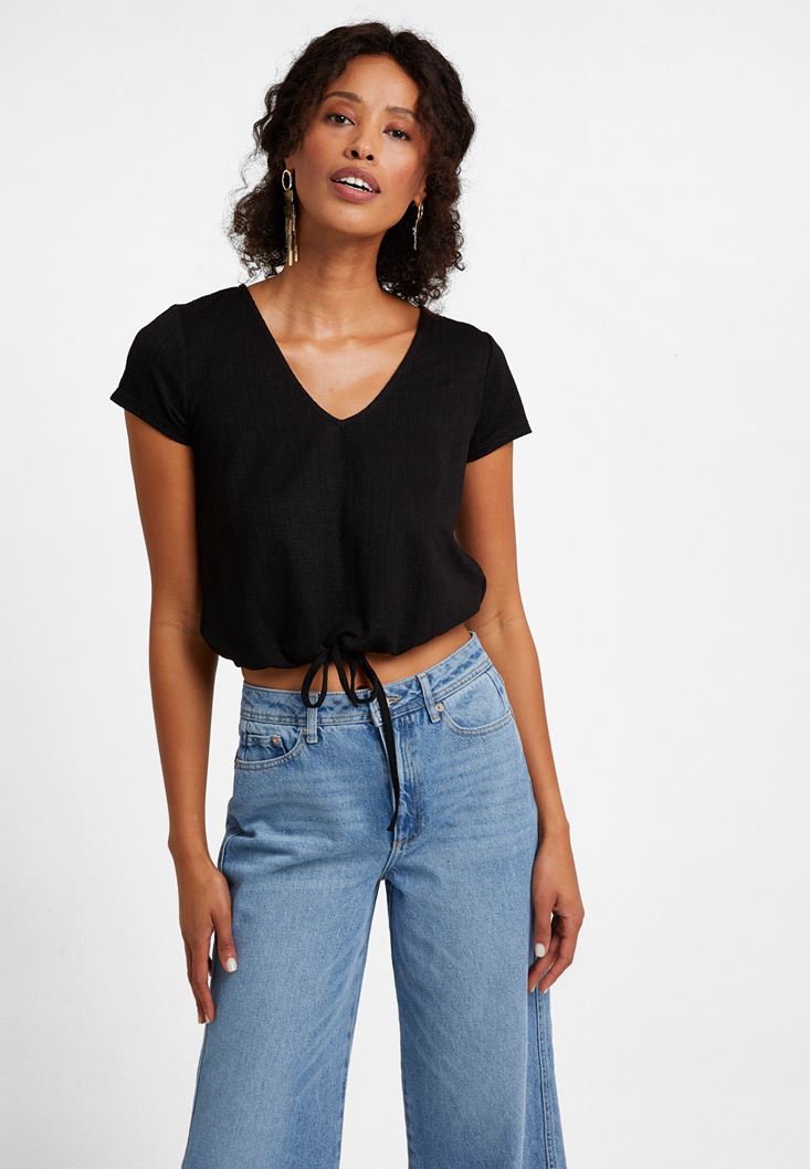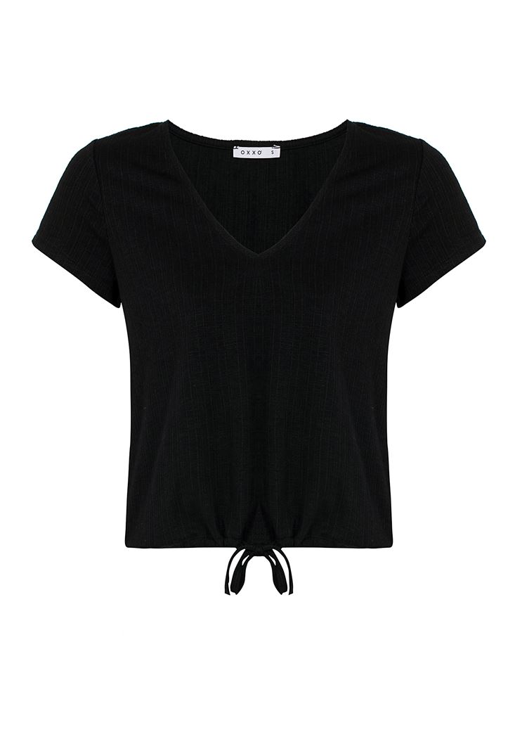 • Bayan Siyah Bağlama Detaylı V Yaka Tişört