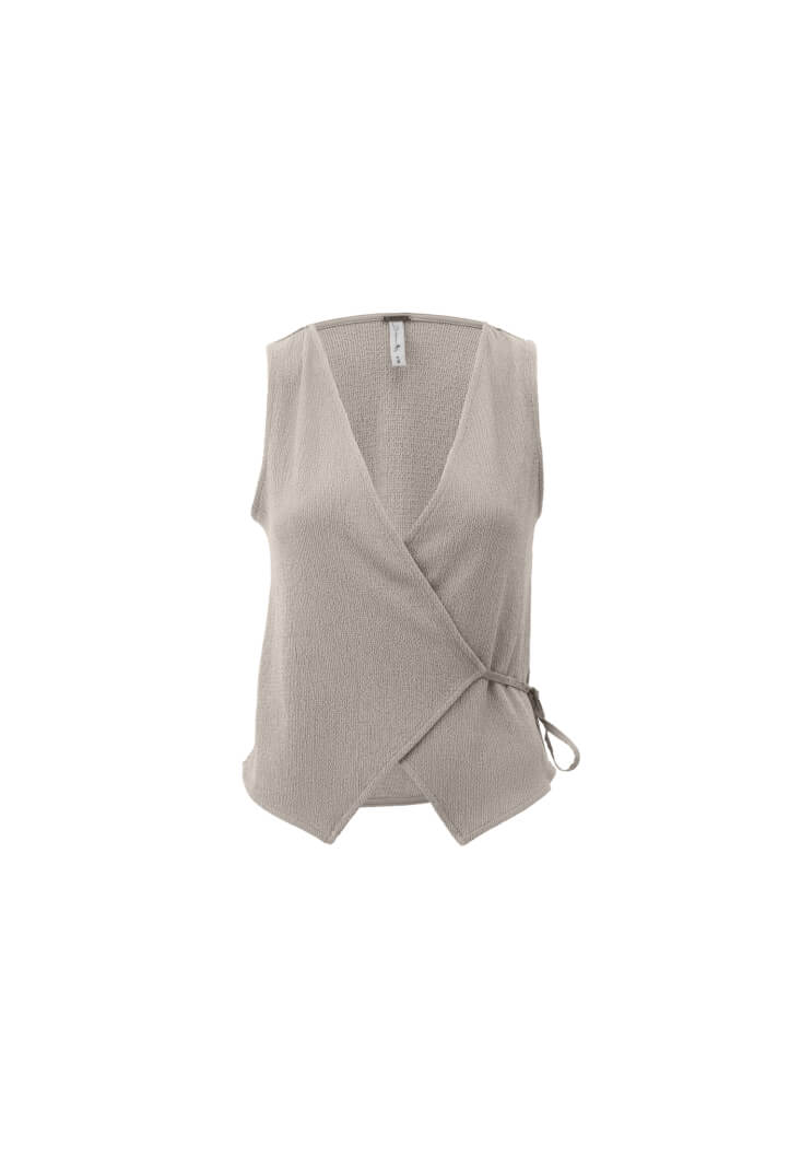 Minimal detaylarla büyük etkileyen bu yelek; bağlama detayının modern dokunuşuyla günlük stilinize zarif bir hava katarken, V yaka formu uzun bir siluet yaratır. Düz ve sade tasarımı sayesinde hem tek başına şık bir ifade olur hem de katmanlı kombinlerde güçlü bir alt yapı oluşturur.