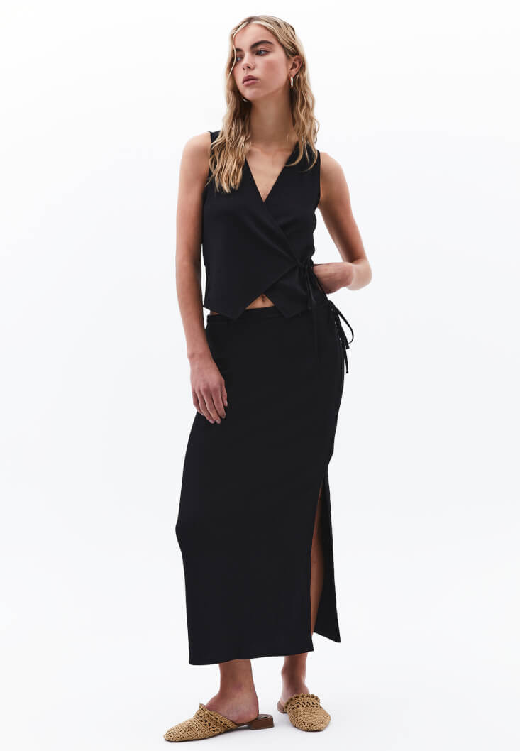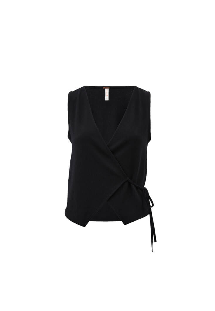 Siyah Bağlama Detaylı Yelek