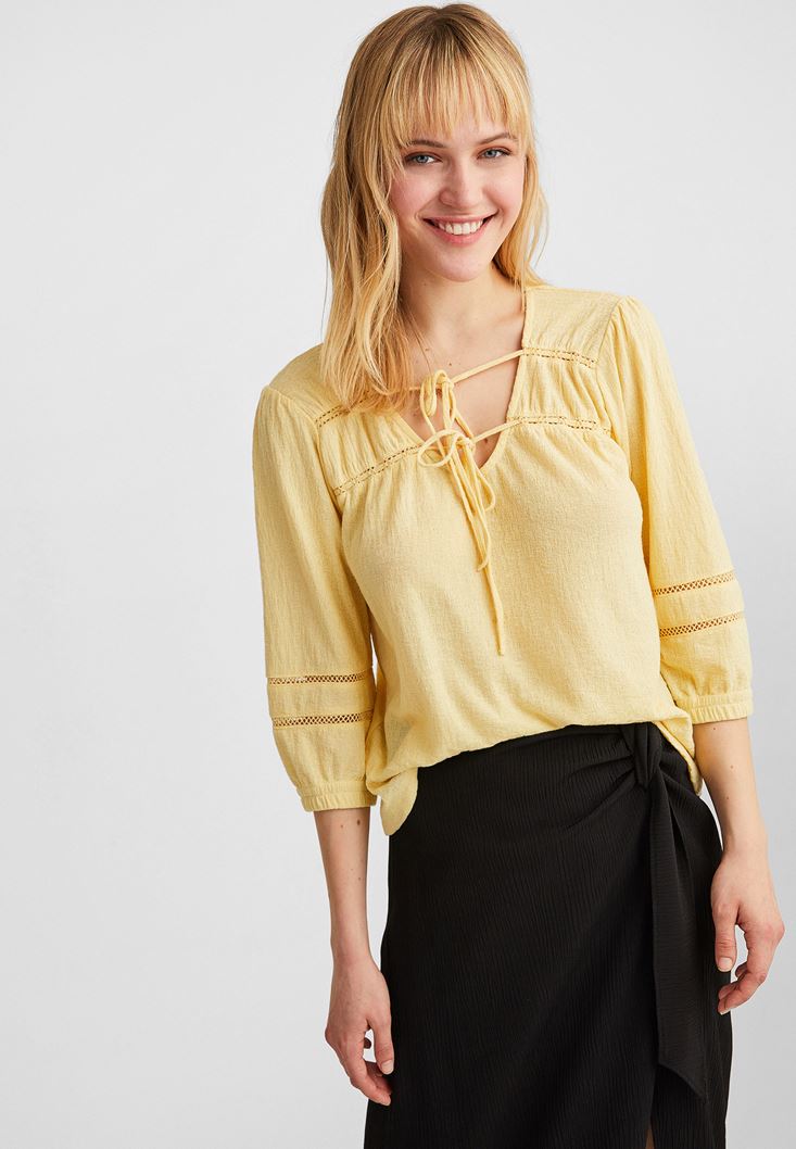 • Bayan Sarı Bağlama ve Dantel Detaylı Bluz