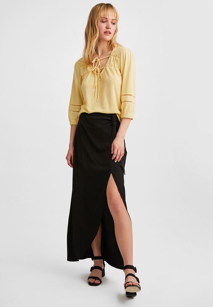 Sarı Bağlama ve Dantel Detaylı Bluz