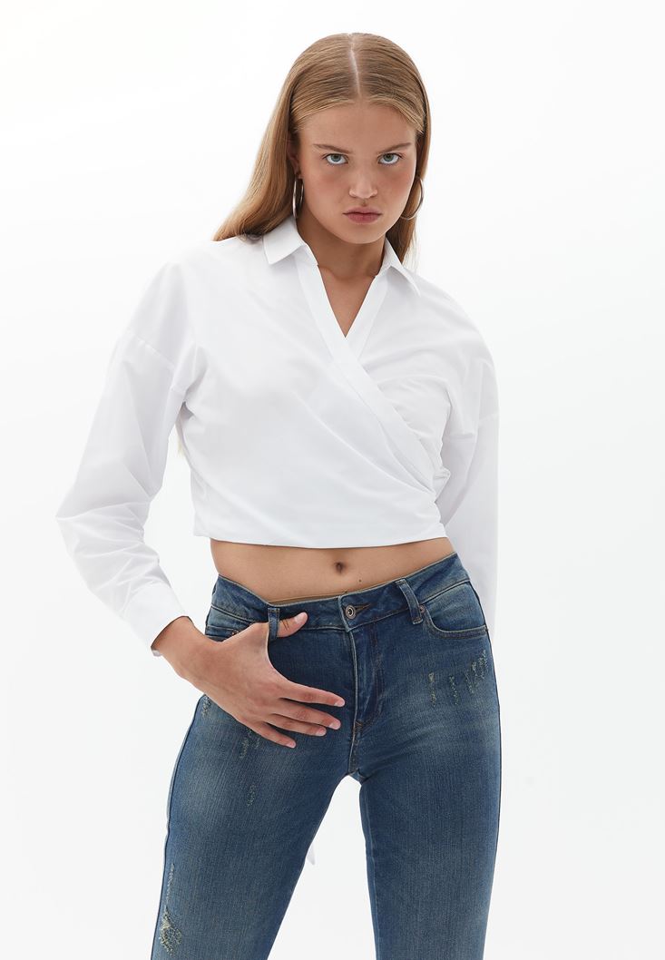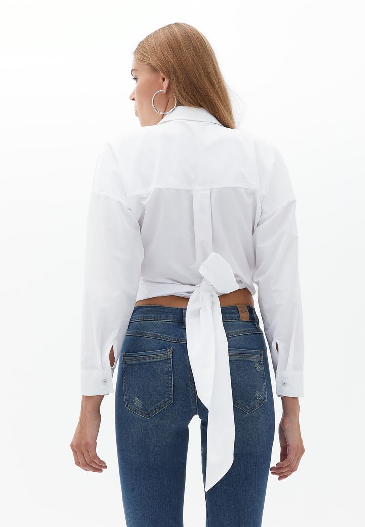 • Bayan Beyaz Bağlamalı Crop Gömlek