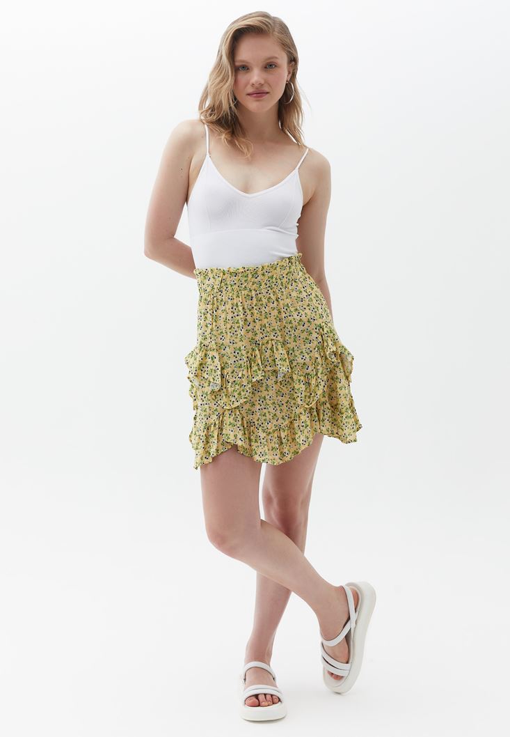 Fırfırlı Mini Etek ve Askılı Atlet Kombini