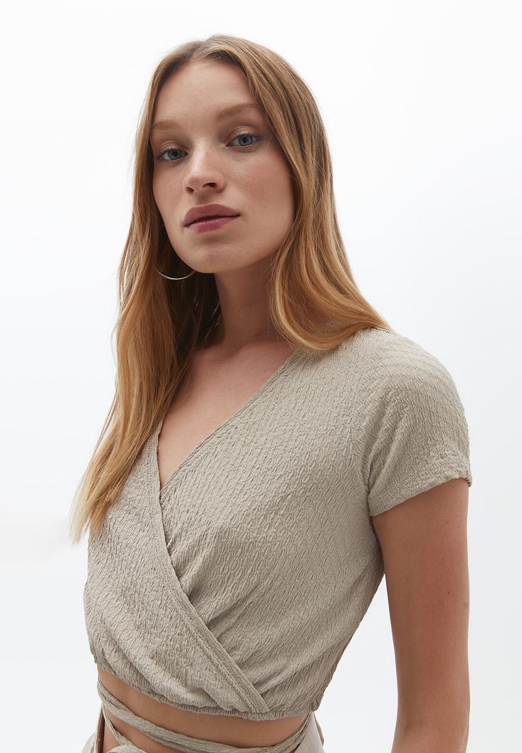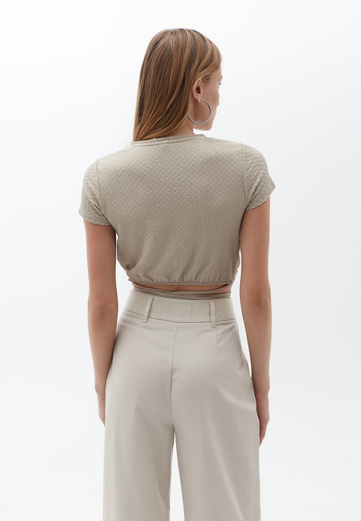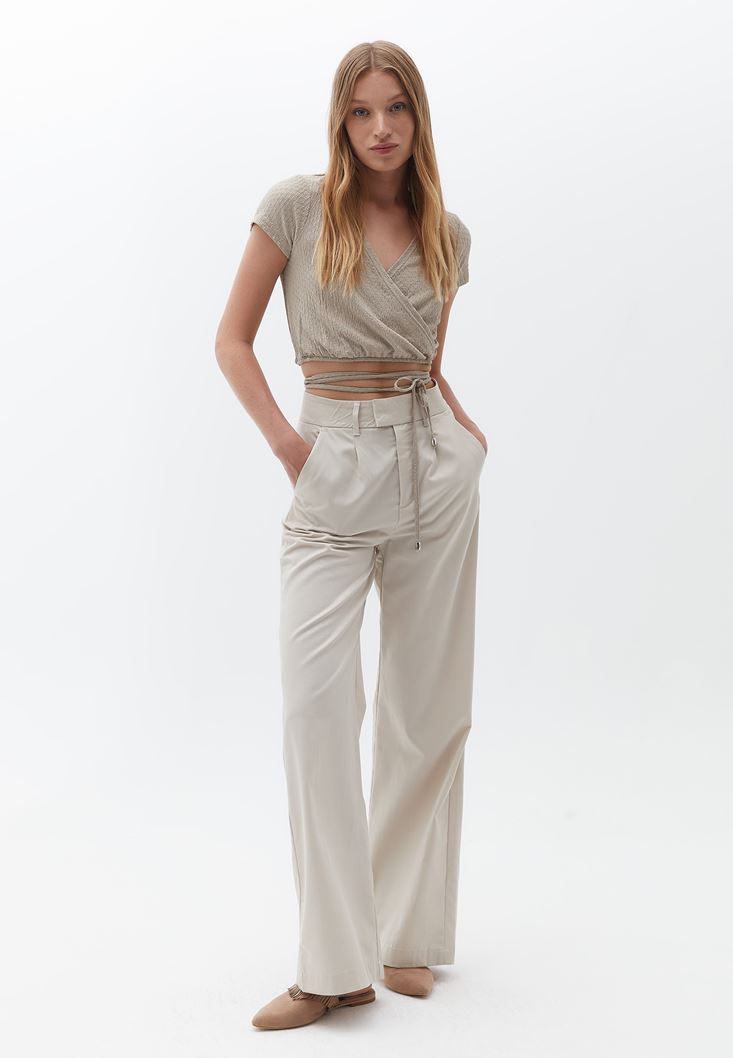 Bağlamalı Crop ve Wide-Leg Pantolon Kombini