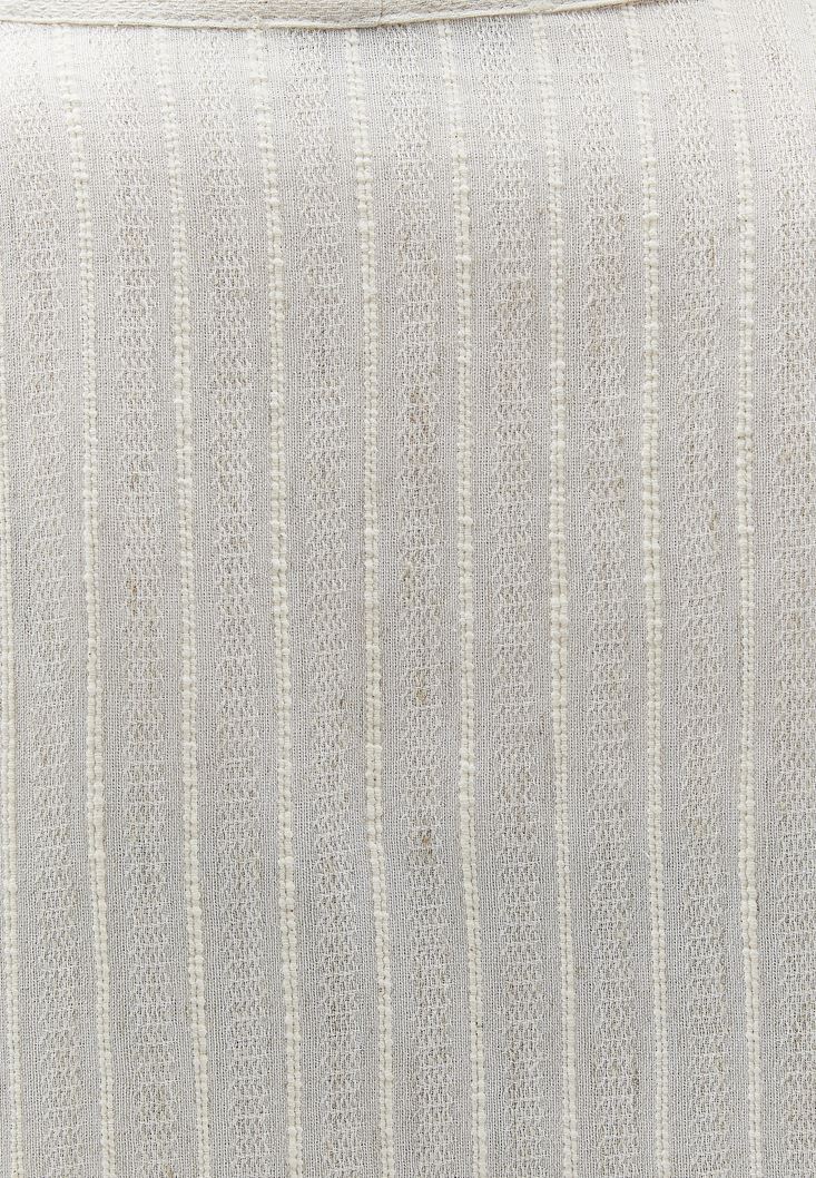 Keten, pamuk ve viskon karışımlı özel doku, çizgi desenli, bedenden uzak oversize fit, uzun kollu, kendi kumaşından kuşaklı, midi boy.
