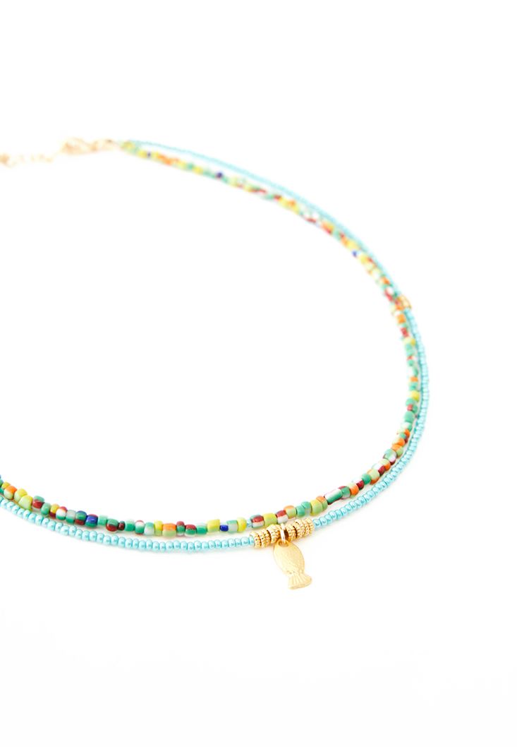 Yeşil Balık Uçlu Boncuklu Kolye