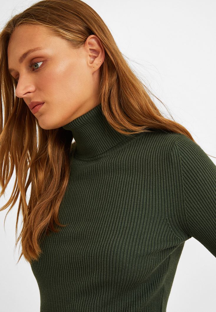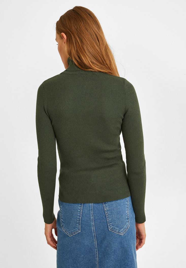 Yeşil Balıkçı Yaka Fitilli Kazak