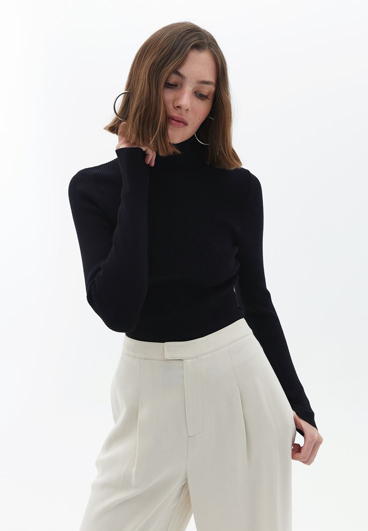 Balıkçı Yaka Kazak ve Tencel Pantolon Kombini