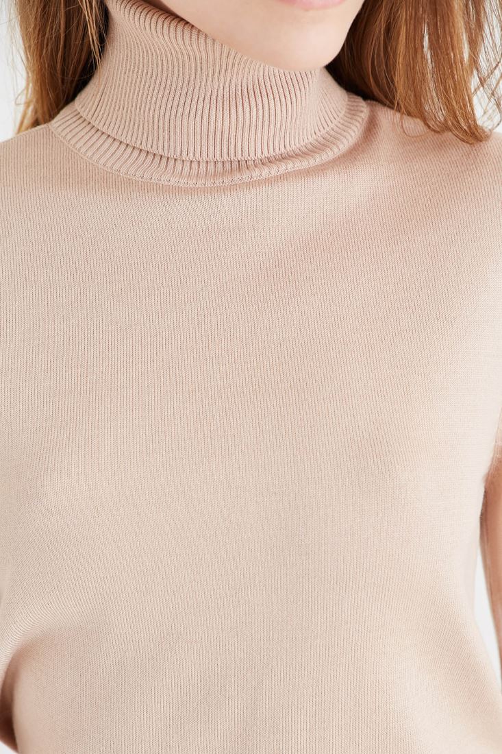 • Bayan Kahverengi Balıkçı Yaka Kazak