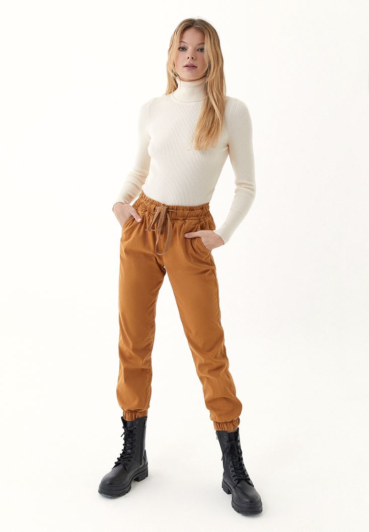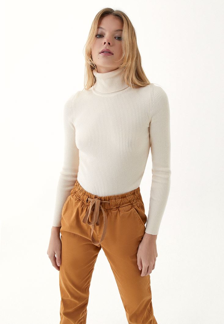 Viskon karışımlı triko, fitilli örgü, balıkçı yaka, uzun kollu, bedeni saran fit, standart boy.