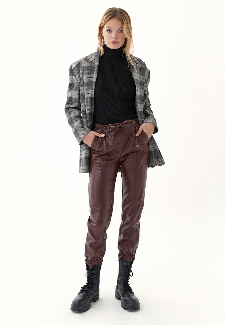Viskon karışımlı triko, fitilli örgü, balıkçı yaka, uzun kollu, bedeni saran fit, standart boy.