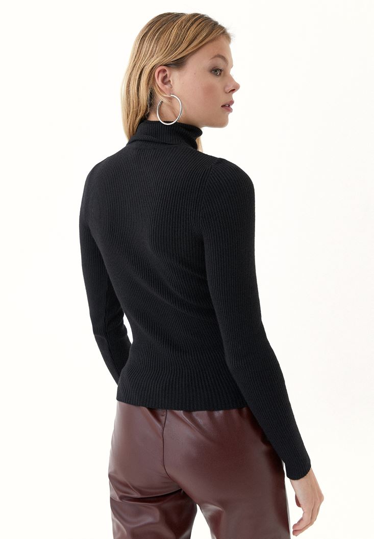 • Bayan Siyah Balıkçı Yaka Triko Kazak