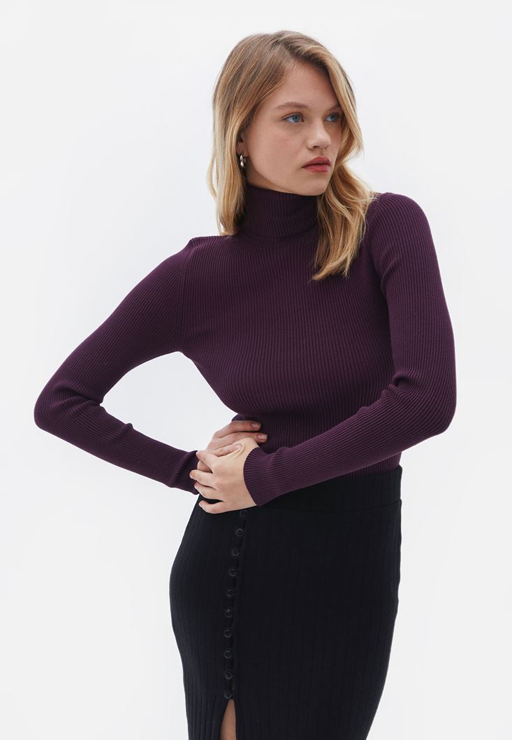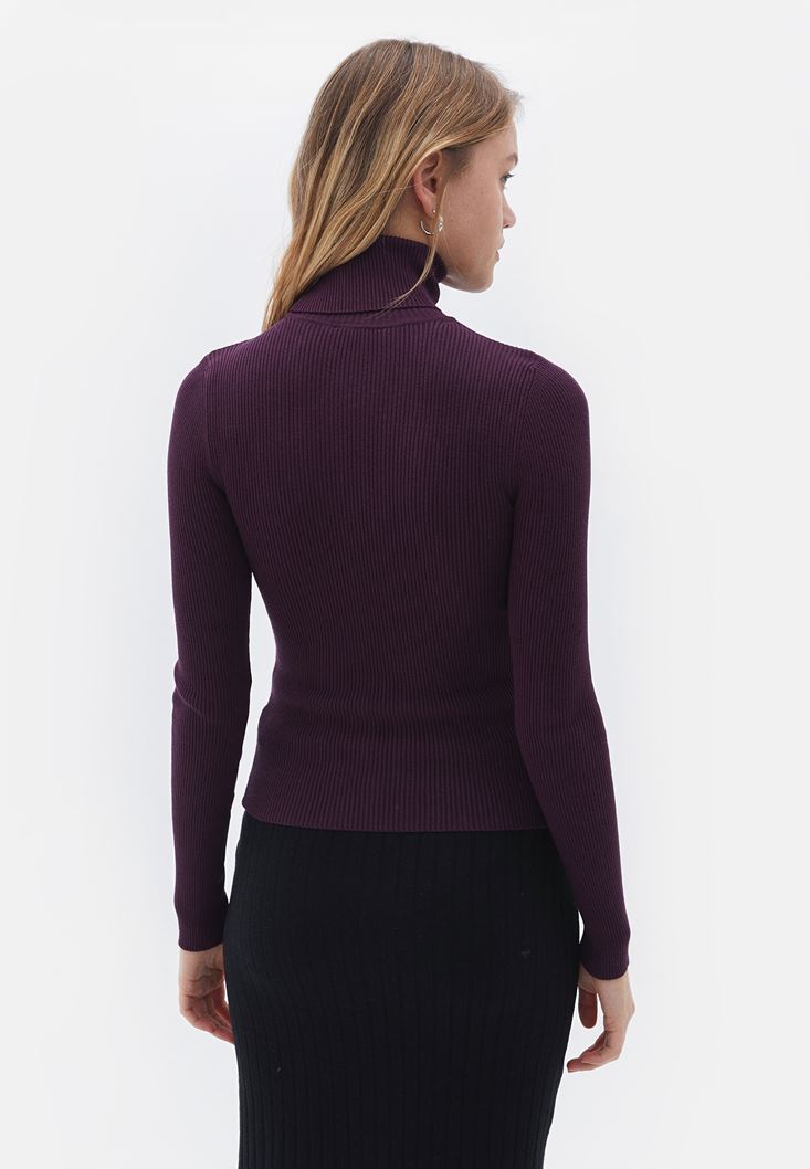 Mor Balıkçı Yaka Triko Kazak