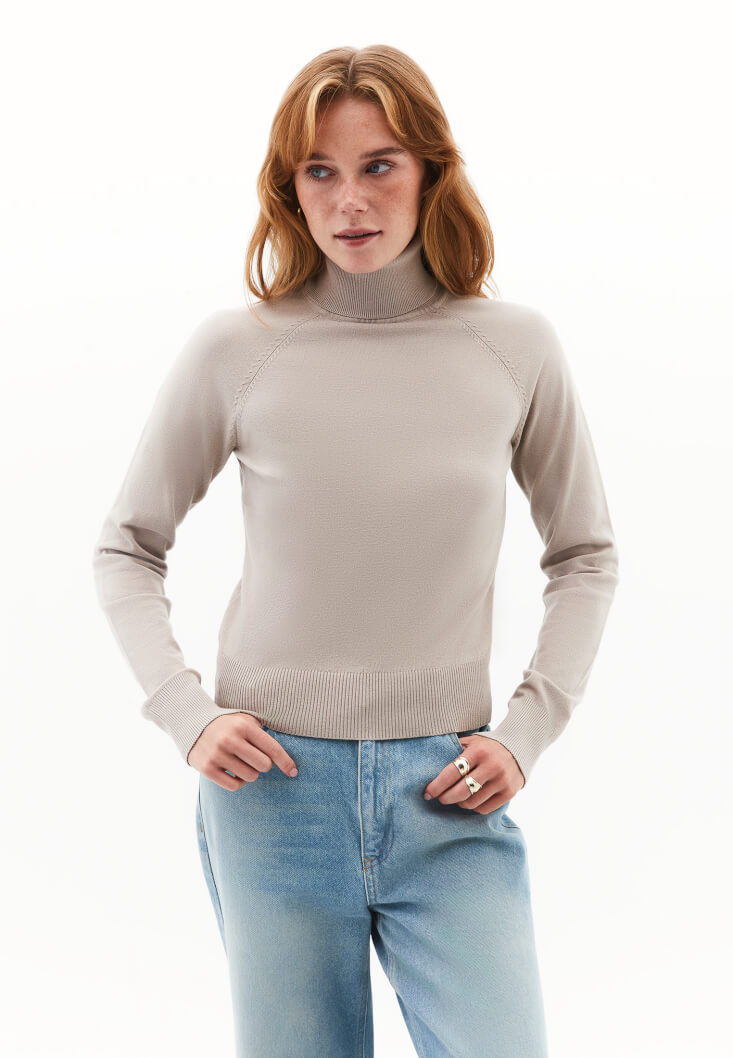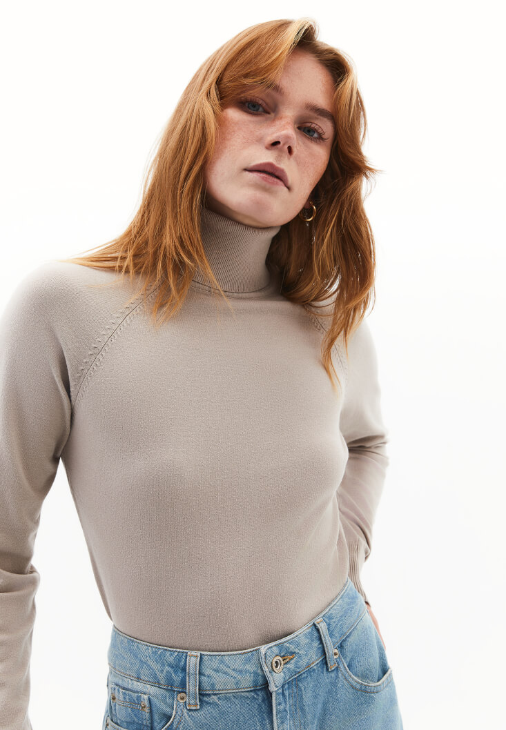 • Bayan Bej Balıkçı Yaka Triko Kazak