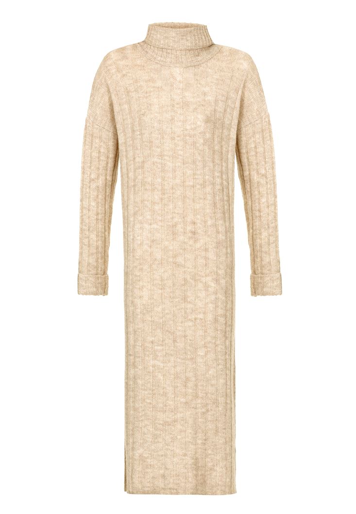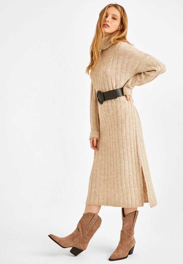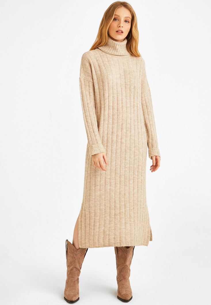 • Bayan Bej Balıkçı Yaka Uzun Elbise