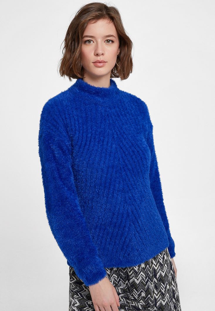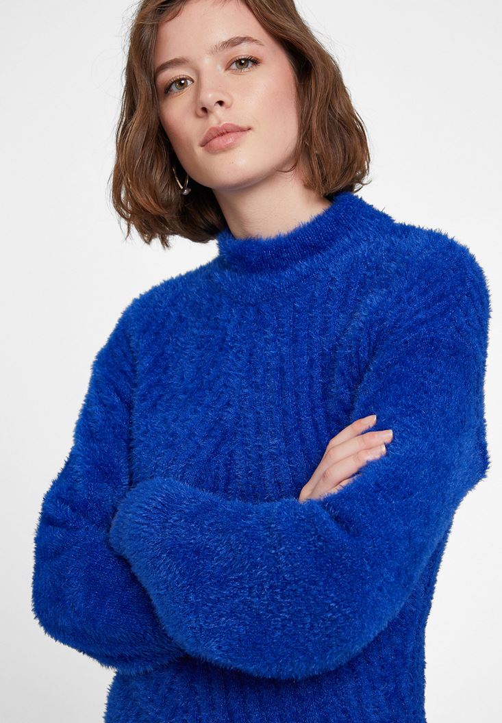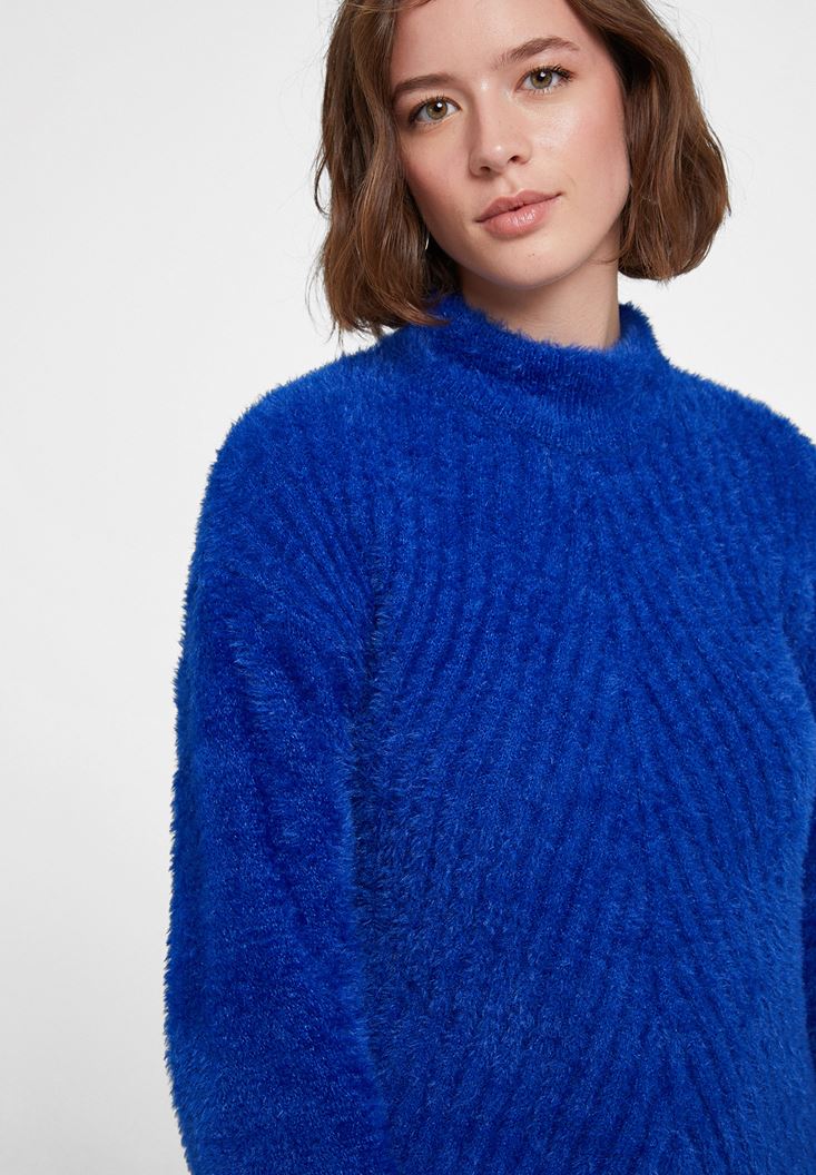 Lacivert Balıkçı Yaka Uzun Kollu Triko