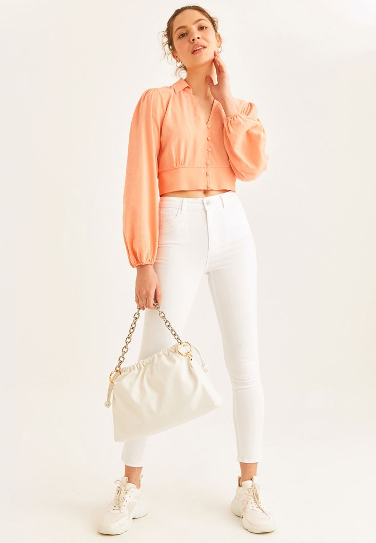 Balon Kol Crop Bluz modeli, Lyocell içeriğe sahip olan yumuşacık dokusu ve farklı görünümü ile Oxxo'da karşınıza çıkıyor. Kadın bluz modeli, belden oturan kalıbı ve balon kol ayrıntısı ile yeni sezona dahil oluyor. Crop bluz modeli ile kombinlerinize çekicilik ve farklılık katabilirsiniz. Yüksek belli pantolonlarla veya midi eteklerle bir araya getirebileceğiniz kadın bluz modeli sayesinde harikalar yaratabilirsiniz. Crop bluz modeli ile oluşturacağınız kombinlerde topuklu ayakkabılardan da yardım alabilirsiniz. Oxxo'nun farklı ayrıntılarla ve feminen detaylarla sizlere sunduğu kadın bluz modelleri ile kendinizi ödüllendirebilirsiniz.