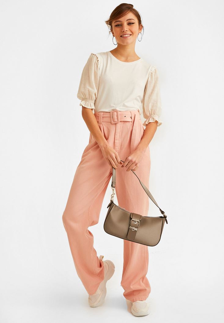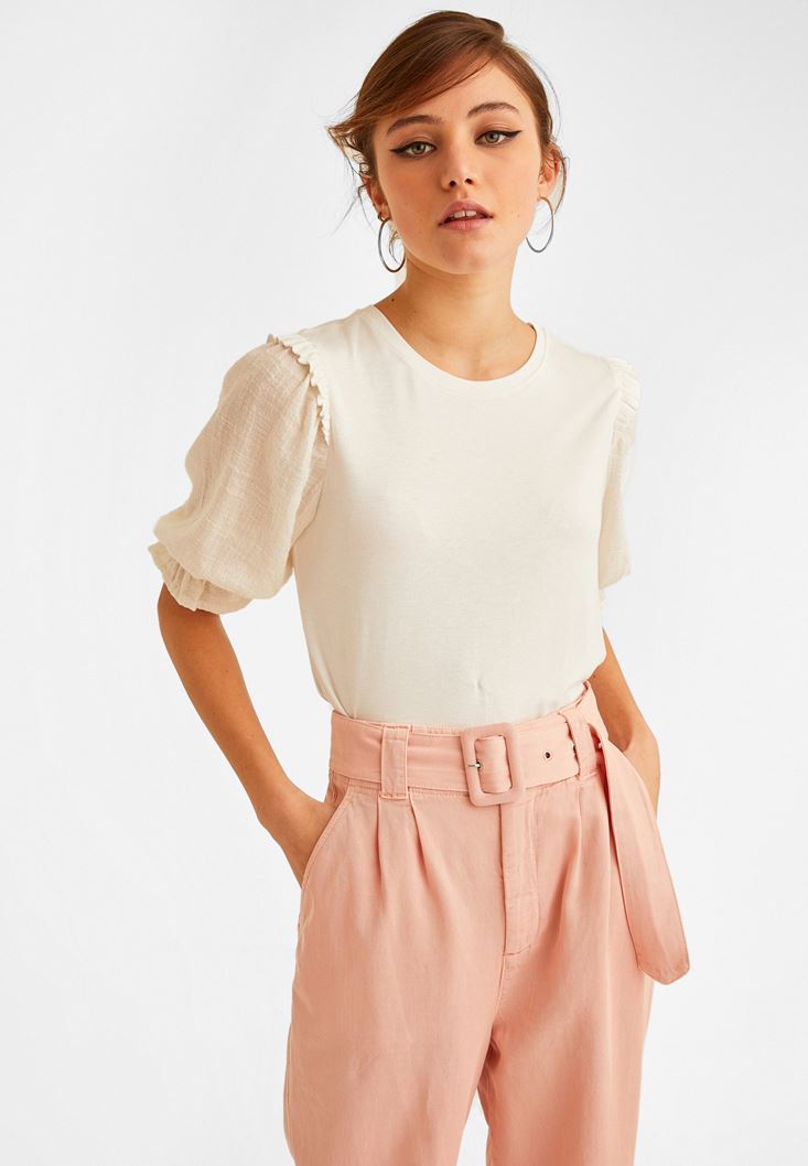 Krem Balon Kollu Bluz