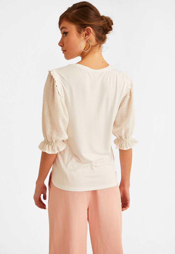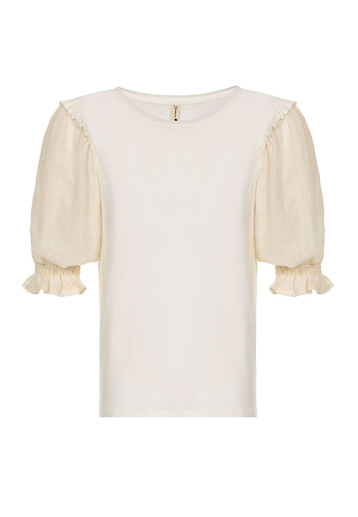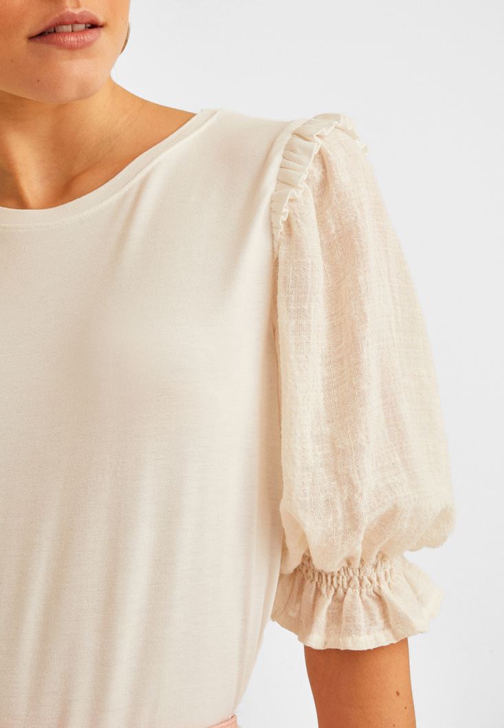 • Bayan Krem Balon Kollu Bluz