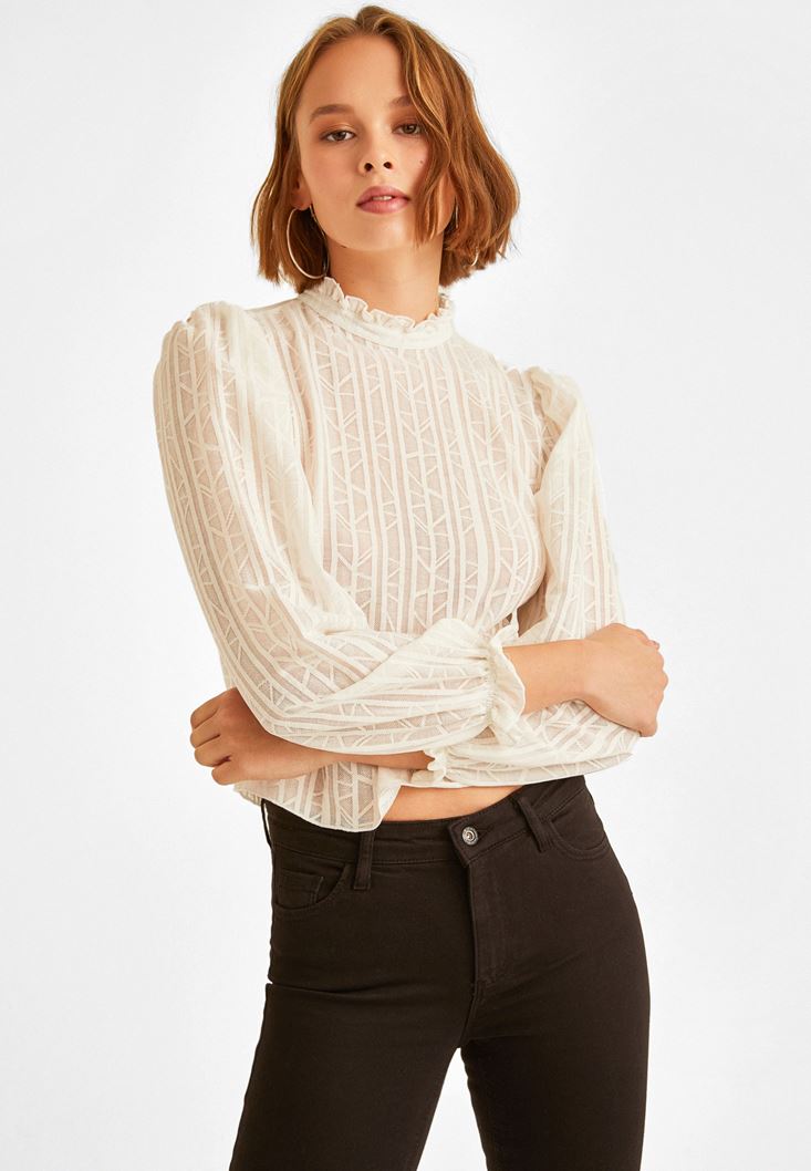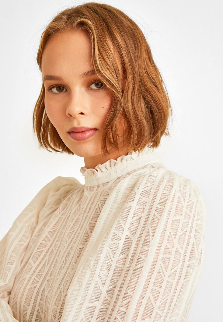 Oxxo Balon Kollu Dantel Bluz 2104141708