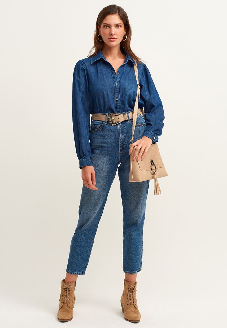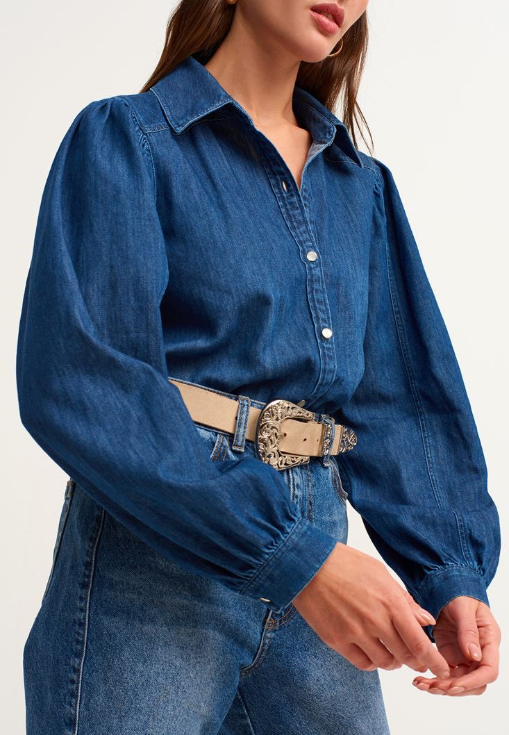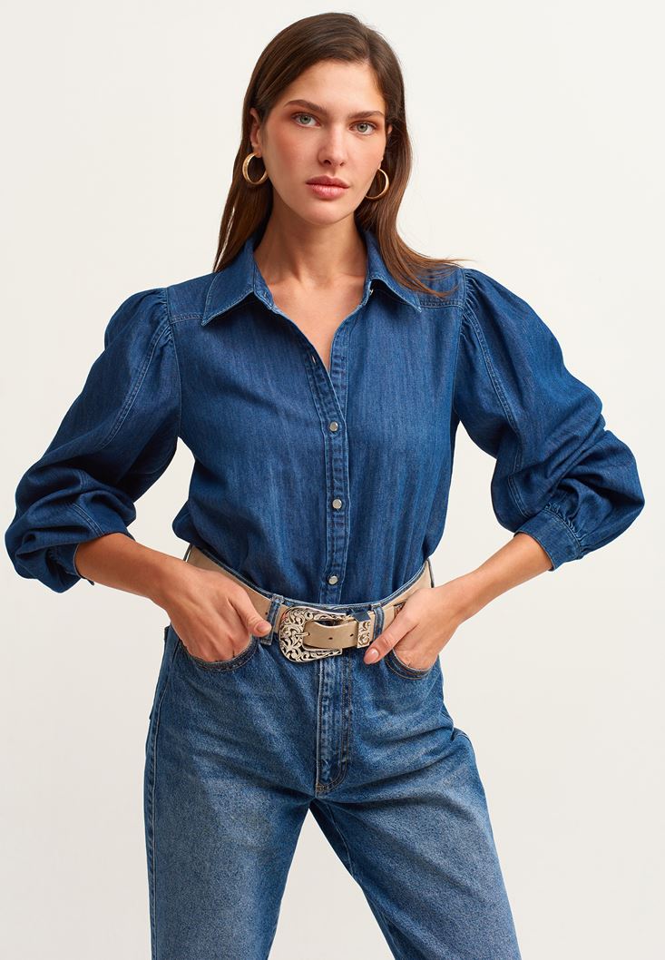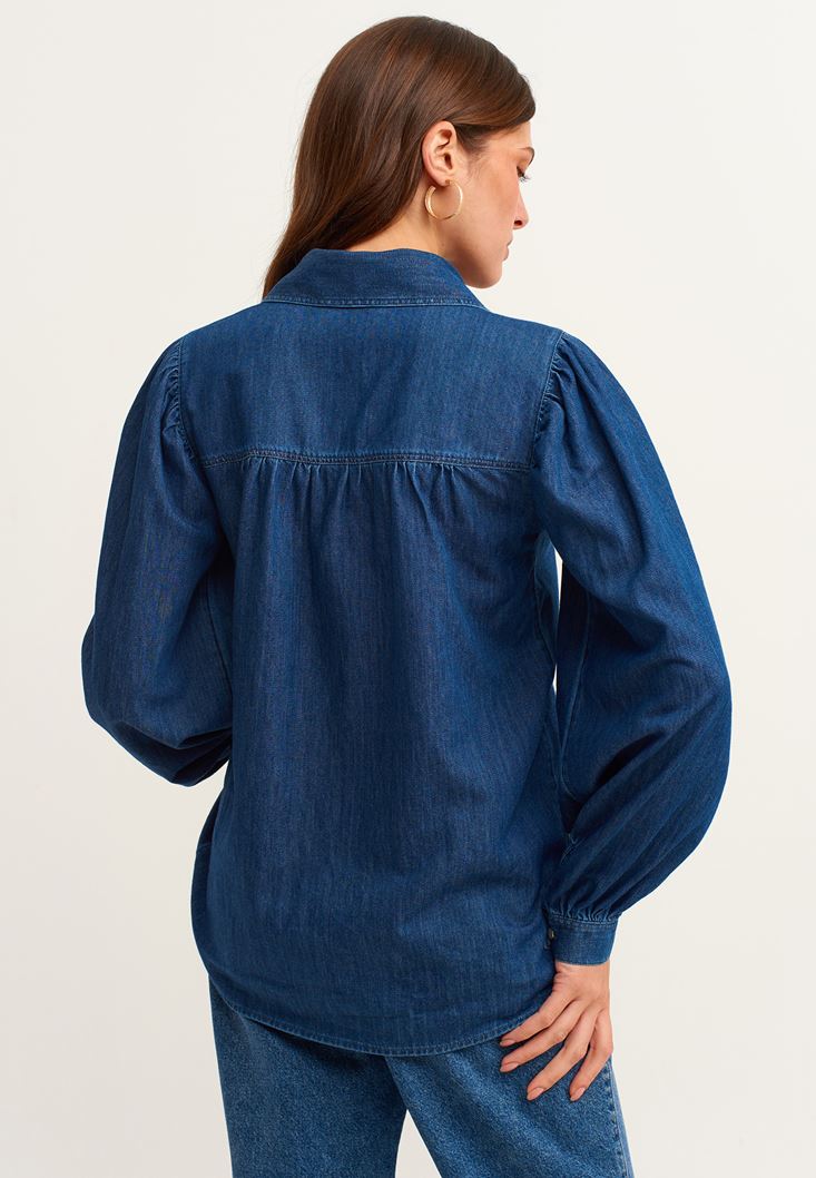 Mavi Balon Kollu Denim Gömlek