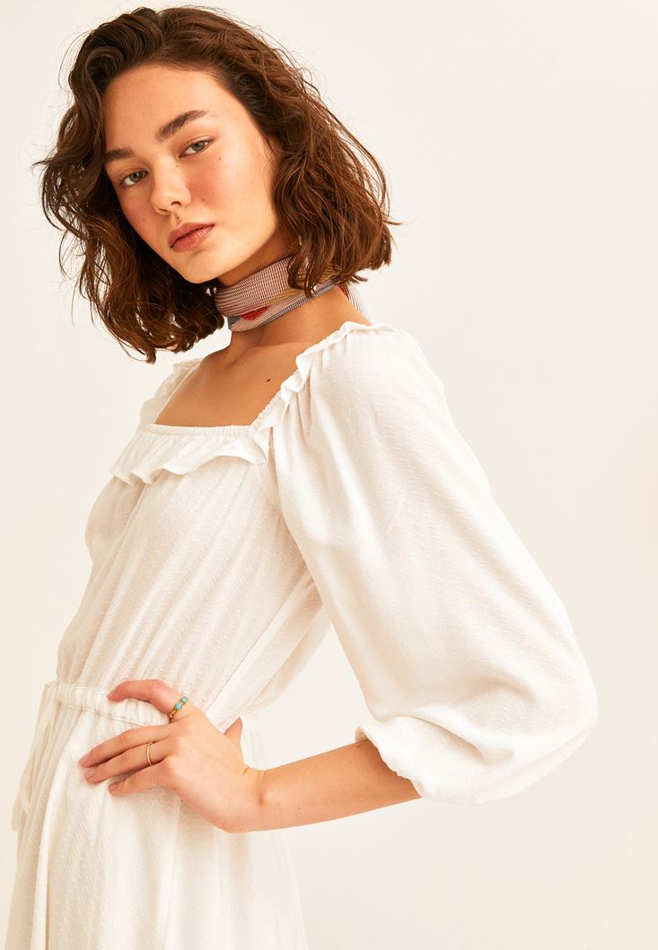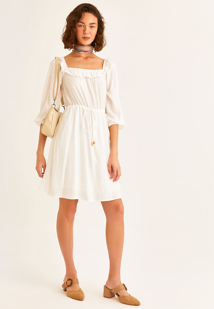 Balon Kollu Kısa Elbise modeli, viskon içeriği ve yumuşak dokusu ile Oxxo'da karşınıza çıkıyor. Kadın elbise modeli, belden büzgülü yapısı ve kare yaka detayı ile oldukça dikkat çekiyor. Ayrıca kısa elbise modeli, balon kol görünümüyle de fazlasıyla ön planda yer alıyor. Tarzınıza zariflik katabileceğiniz kadın elbise modelinin yanında topuklu ayakkabılar ve askılı çantalar tercih edebilirsiniz. Kısa elbise modeli ile oluşturacağınız kombinleri crop ceketlerle tamamlayabilirsiniz. Oxxo'nun göz alıcı ayrıntılarla ve hoş dokularla sizlere sunduğu kısa elbise modelleri ile büyüleyici bir tarz yaratabilirsiniz.