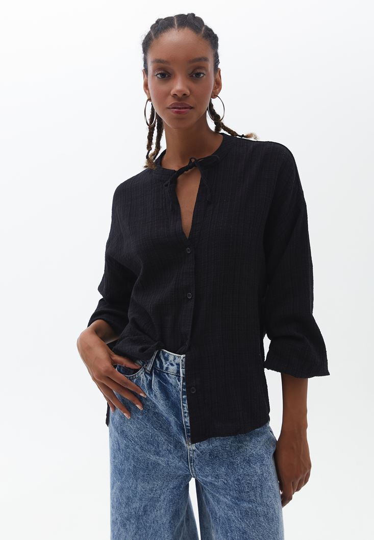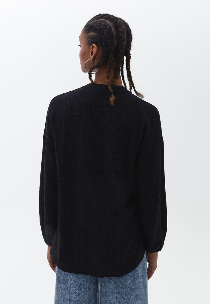 Siyah Balon Kollu Gömlek
