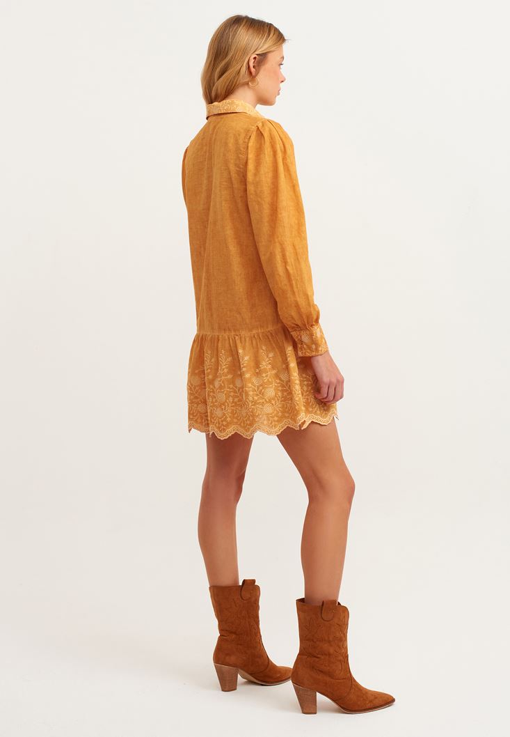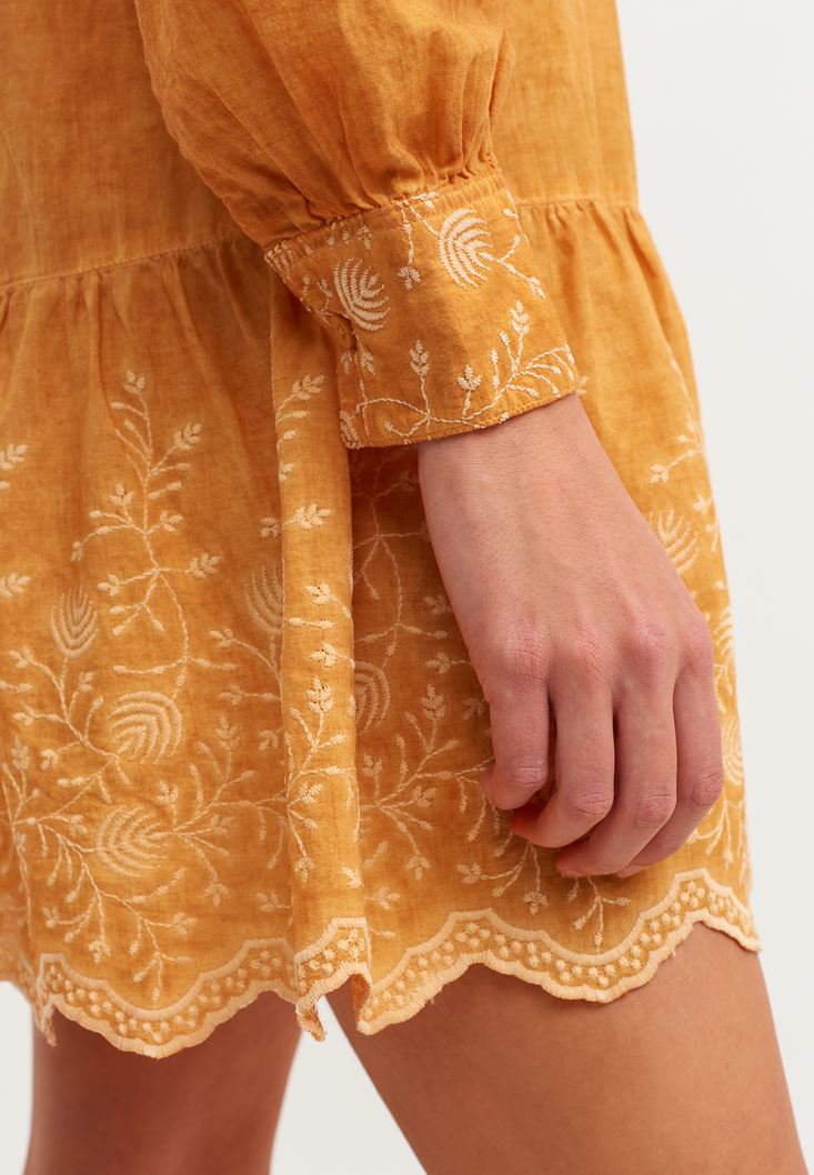 • Bayan Turuncu Balon Kollu Kısa Gömlek Elbise