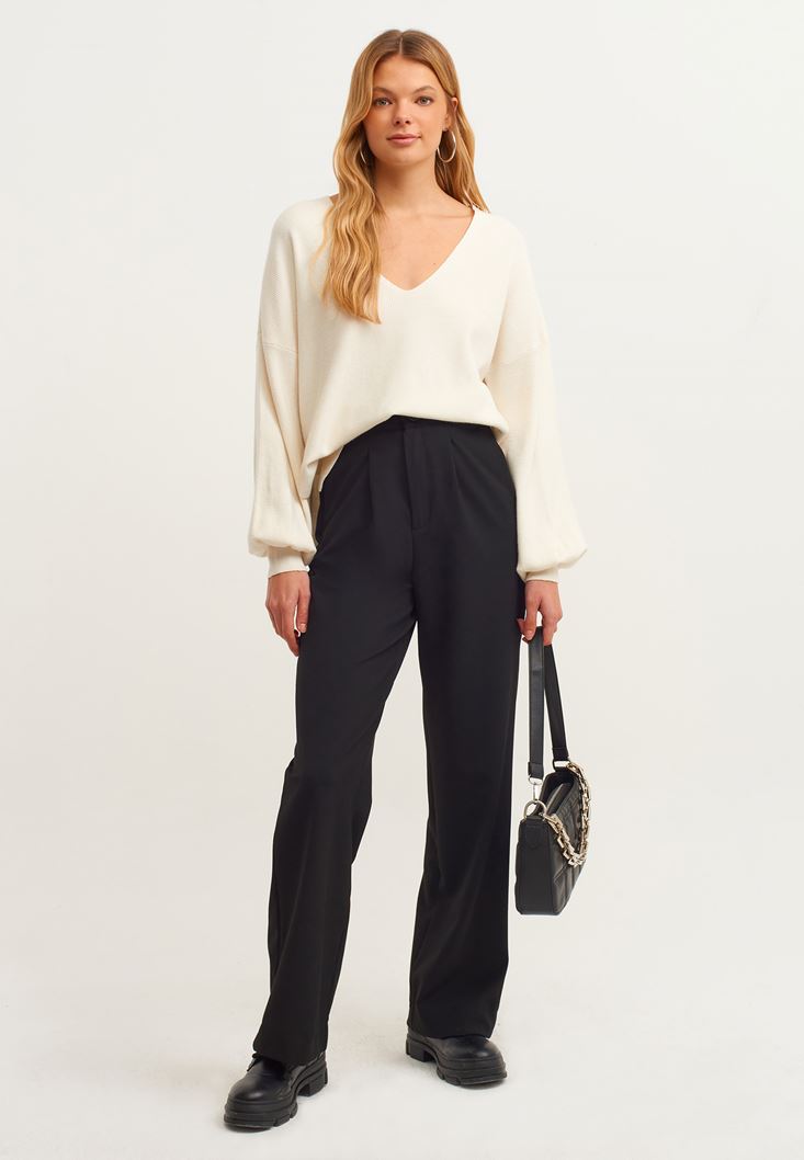 Fit: Loose / Yaka: Deep V Neck / Kol: Long Sleeve