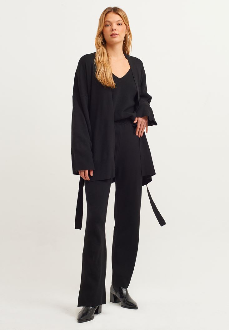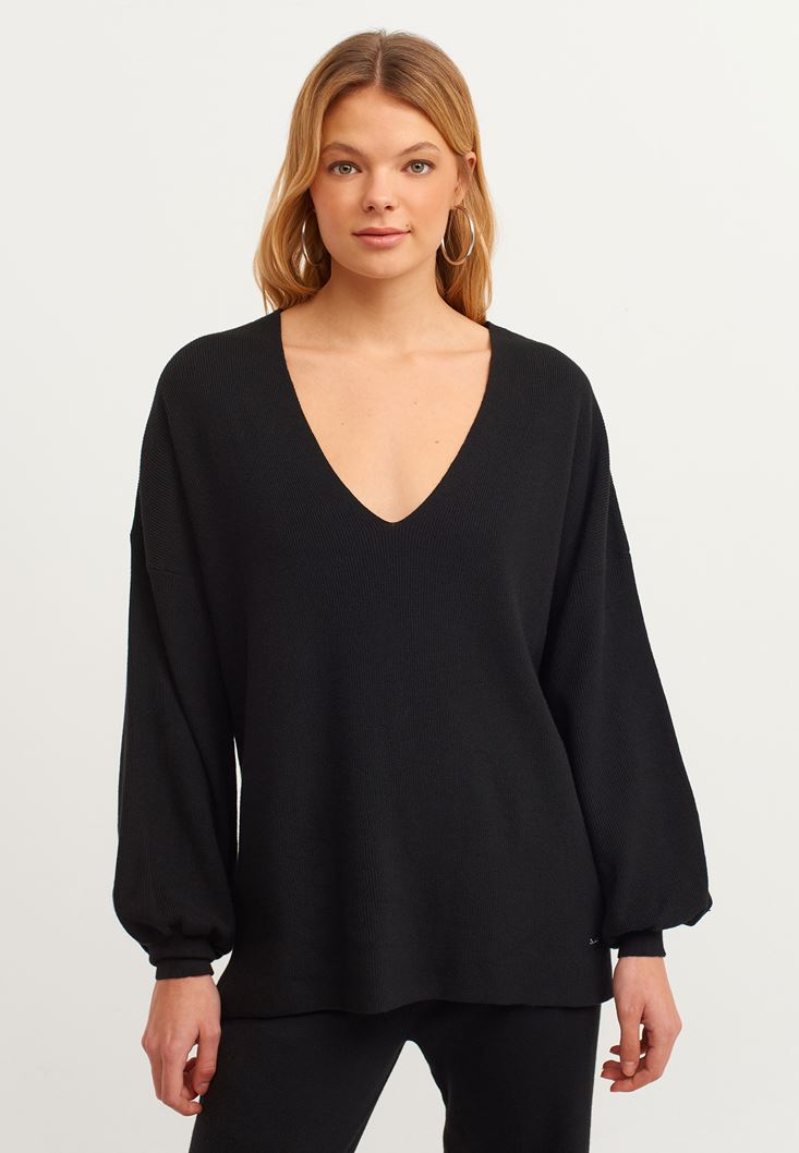 Siyah Balon Kollu Triko Kazak